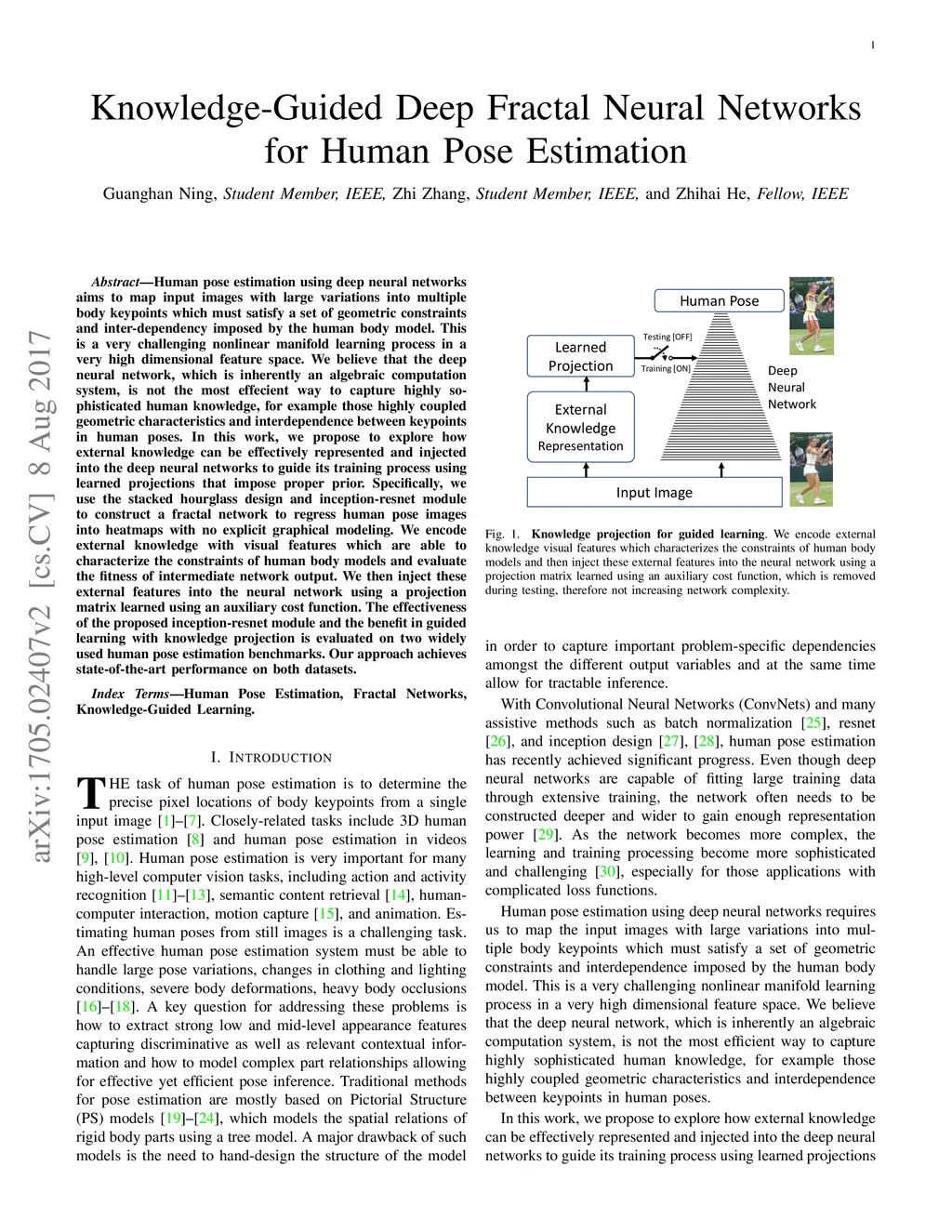 Knowledge-Guided Deep Fractal Neural Networks for Human Pose Estimation