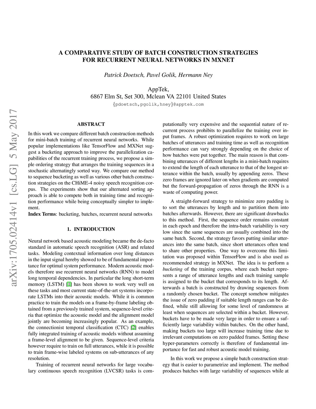 In this work we compare different batch construction methods for mini-batch training of recurrent neural networks. While popular implementations like TensorFlow and MXNet suggest a bucketing approach to improve the parallelization capabilities of the recurrent training process, we propose a simple ordering strategy that arranges the training sequences in a stochastic alternatingly sorted way. We compare our method to sequence bucketing as well as various other batch construction strategies on the CHiME-4 noisy speech recognition corpus. The experiments show that our alternated sorting approach is able to compete both in training time and recognition performance while being conceptually simpler to implement.