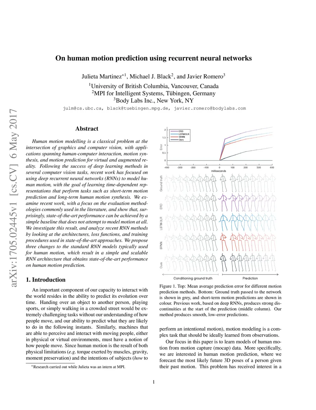 On human motion prediction using recurrent neural networks