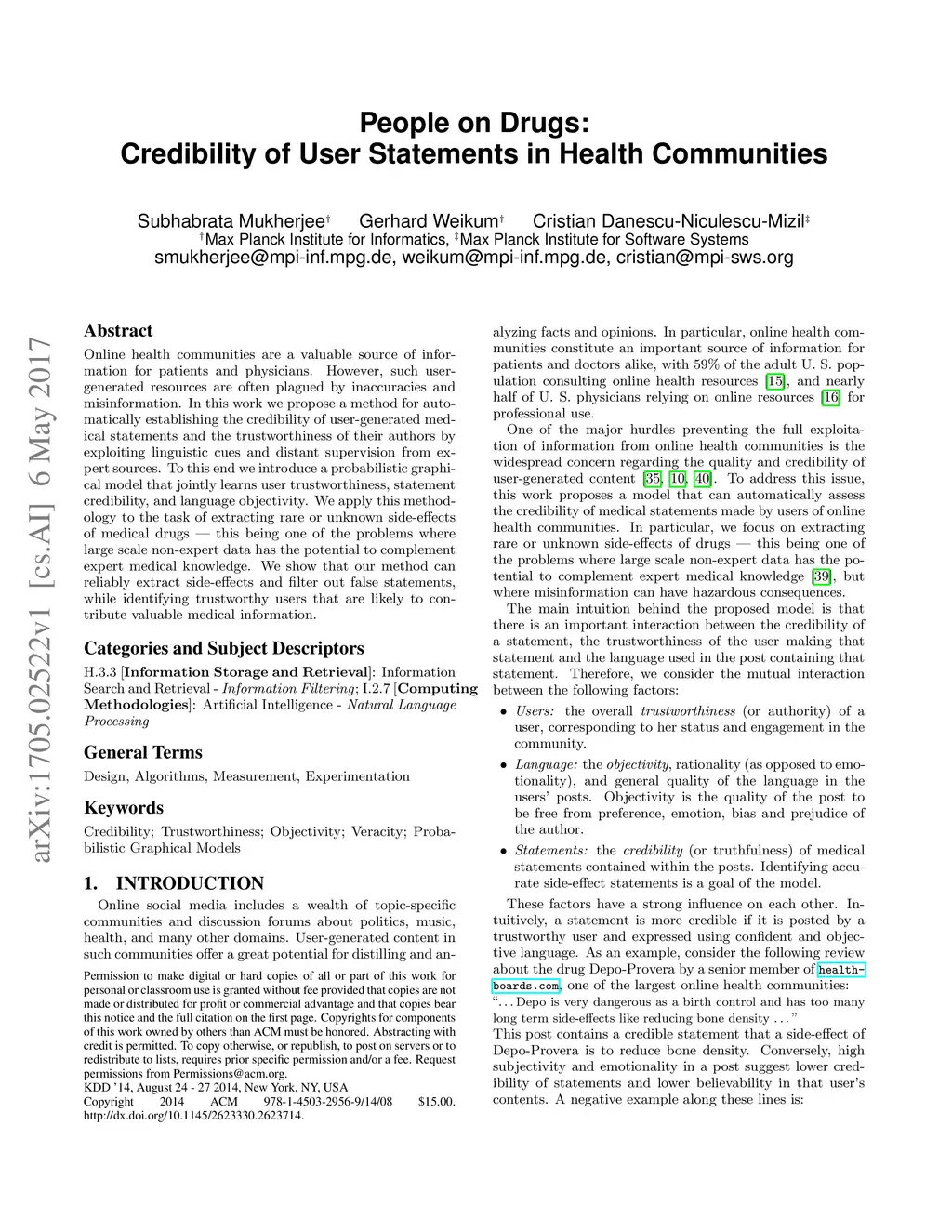 People on Drugs: Credibility of User Statements in Health Communities