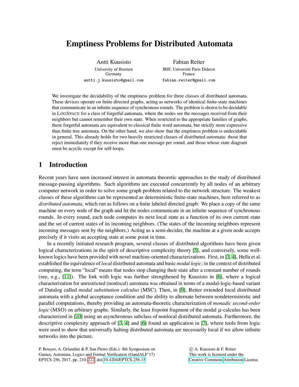 We investigate the decidability of the emptiness problem for three classes of distributed automata. These devices operate on finite directed graphs, acting as networks of identical finite-state machines that communicate in an infinite sequence of synchronous rounds. The problem is shown to be decidable in LogSpace for a class of forgetful automata, where the nodes see the messages received from their neighbors but cannot remember their own state. When restricted to the appropriate families of graphs, these forgetful automata are equivalent to classical finite word automata, but strictly more expressive than finite tree automata. On the other hand, we also show that the emptiness problem is undecidable in general. This already holds for two heavily restricted classes of distributed automata: those that reject immediately if they receive more than one message per round, and those whose state diagram must be acyclic except for self-loops.