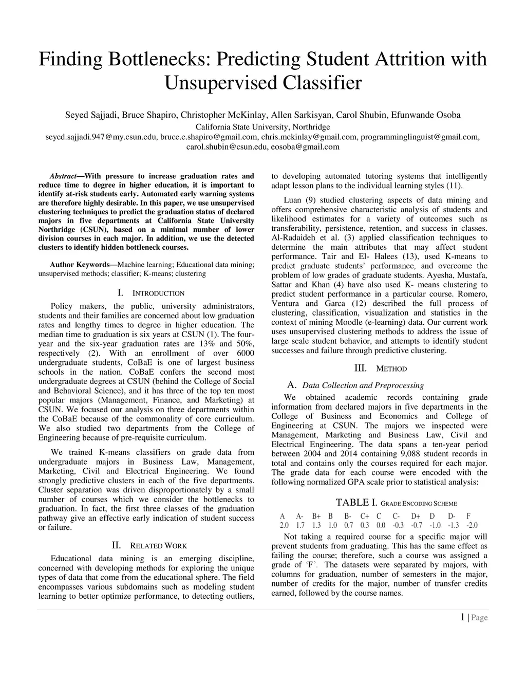 Finding Bottlenecks: Predicting Student Attrition with Unsupervised
