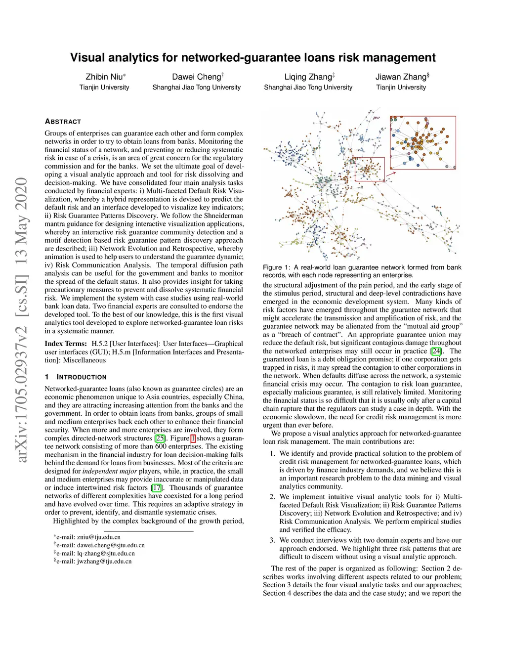 Groups of enterprises guarantee each other and form complex guarantee networks when they try to obtain loans from banks. Such secured loan can enhance the solvency and promote the rapid growth in the economic upturn period. However, potential systemic risk may happen within the risk binding community. Especially, during the economic down period, the crisis may spread in the guarantee network like a domino. Monitoring the financial status, preventing or reducing systematic risk when crisis happens is highly concerned by the regulatory commission and banks. We propose visual analytics approach for loan guarantee network risk management, and consolidate the five analysis tasks with financial experts: i) visual analytics for enterprises default risk, whereby a hybrid representation is devised to predict the default risk and developed an interface to visualize key indicators; ii) visual analytics for high default groups, whereby a community detection based interactive approach is presented; iii) visual analytics for high defaults pattern, whereby a motif detection based interactive approach is described, and we adopt a Shneiderman Mantra strategy to reduce the computation complexity. iv) visual analytics for evolving guarantee network, whereby animation is used to help understanding the guarantee dynamic; v) visual analytics approach and interface for default diffusion path. The temporal diffusion path analysis can be useful for the government and bank to monitor the default spread status. It also provides insight for taking precautionary measures to prevent and dissolve systemic financial risk. We implement the system with case studies on a real-world guarantee network. Two financial experts are consulted with endorsement on the developed tool. To the best of our knowledge, this is the first visual analytics tool to explore the guarantee network risks in a systematic manner.