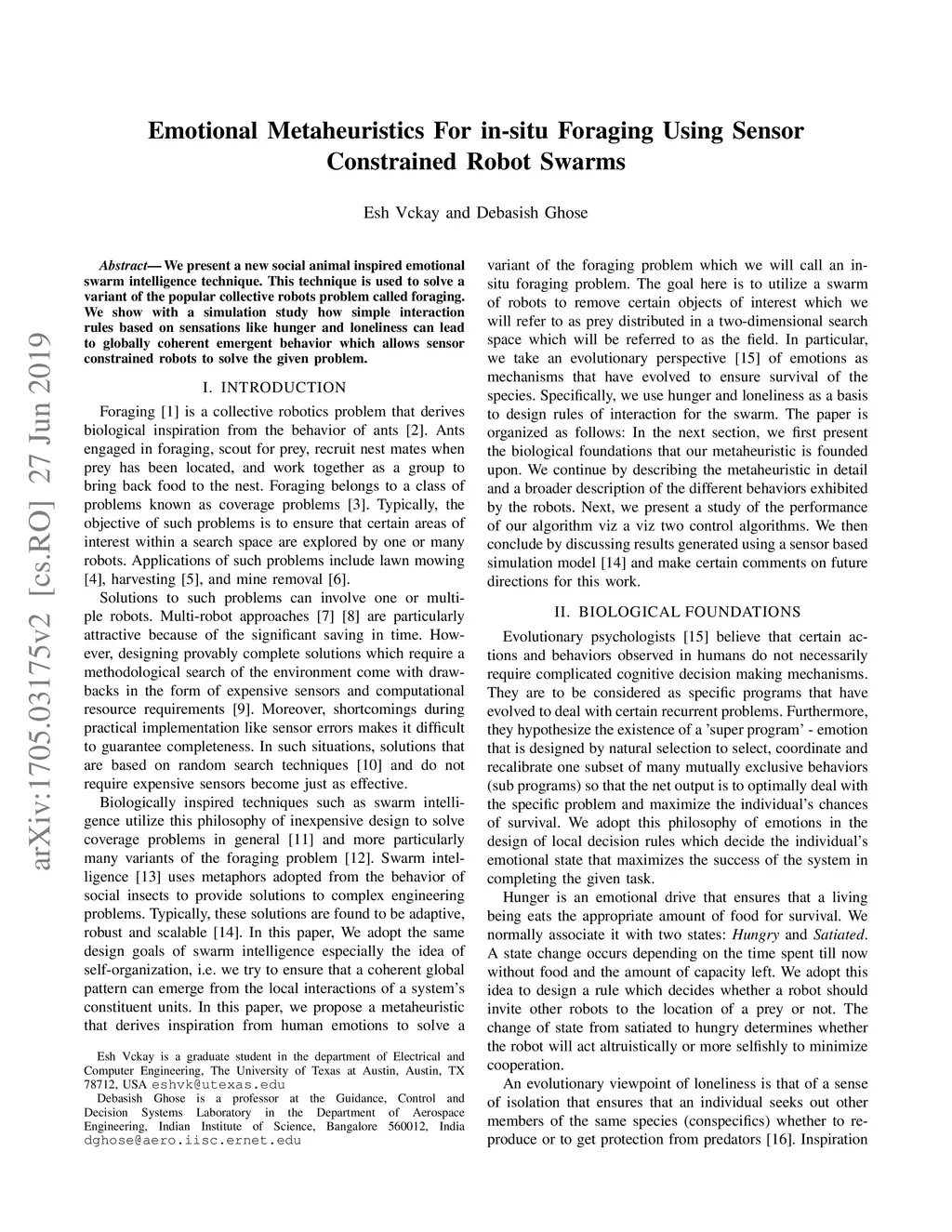 Emotional Metaheuristics For in-situ Foraging Using Sensor Constrained