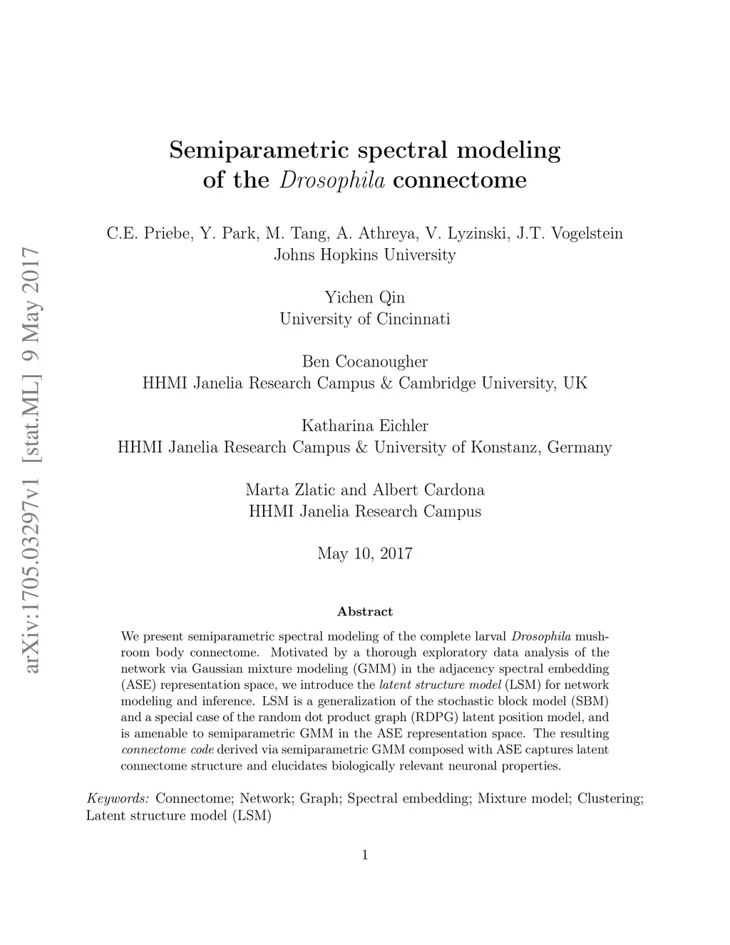 Semiparametric spectral modeling of the Drosophila connectome