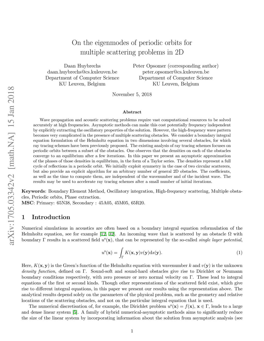 On the eigenmodes of periodic orbits for multiple scattering problems in