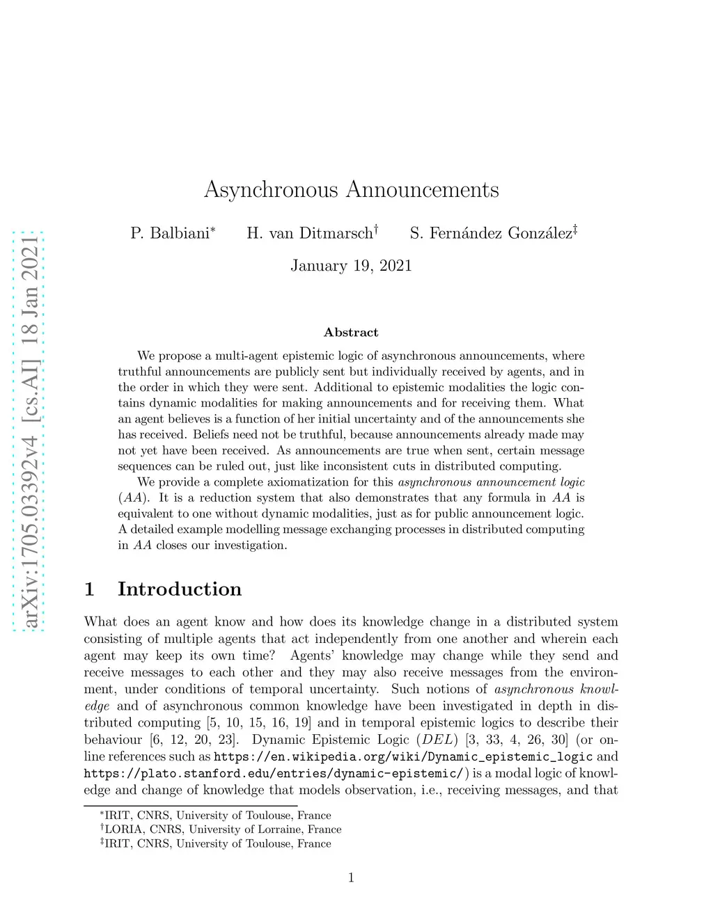 Asynchronous Announcements