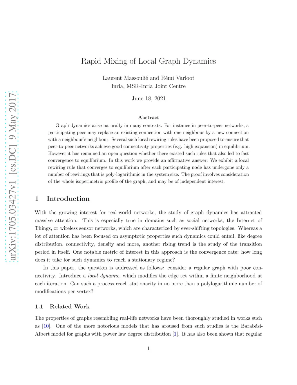 Graph dynamics arise naturally in many contexts. For instance in peer-to-peer networks, a participating peer may replace an existing connection with one neighbour by a new connection with a neighbour's neighbour. Several such local rewiring rules have been proposed to ensure that peer-to-peer networks achieve good connectivity properties (e.g. high expansion) in equilibrium. However it has remained an open question whether there existed such rules that also led to fast convergence to equilibrium. In this work we provide an affirmative answer: We exhibit a local rewiring rule that converges to equilibrium after each participating node has undergone only a number of rewirings that is poly-logarithmic in the system size. The proof involves consideration of the whole isoperimetric profile of the graph, and may be of independent interest.