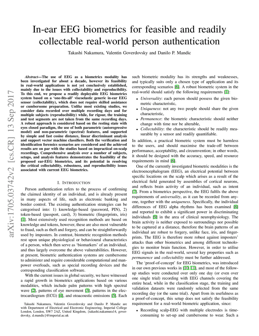 In-ear EEG biometrics for feasible and readily collectable real-world