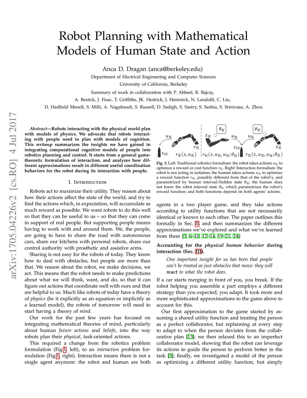 Robots interacting with the physical world plan with models of physics. We advocate that robots interacting with people need to plan with models of cognition. This writeup summarizes the insights we have gained in integrating computational cognitive models of people into robotics planning and control. It starts from a general game-theoretic formulation of interaction, and analyzes how different approximations result in different useful coordination behaviors for the robot during its interaction with people.