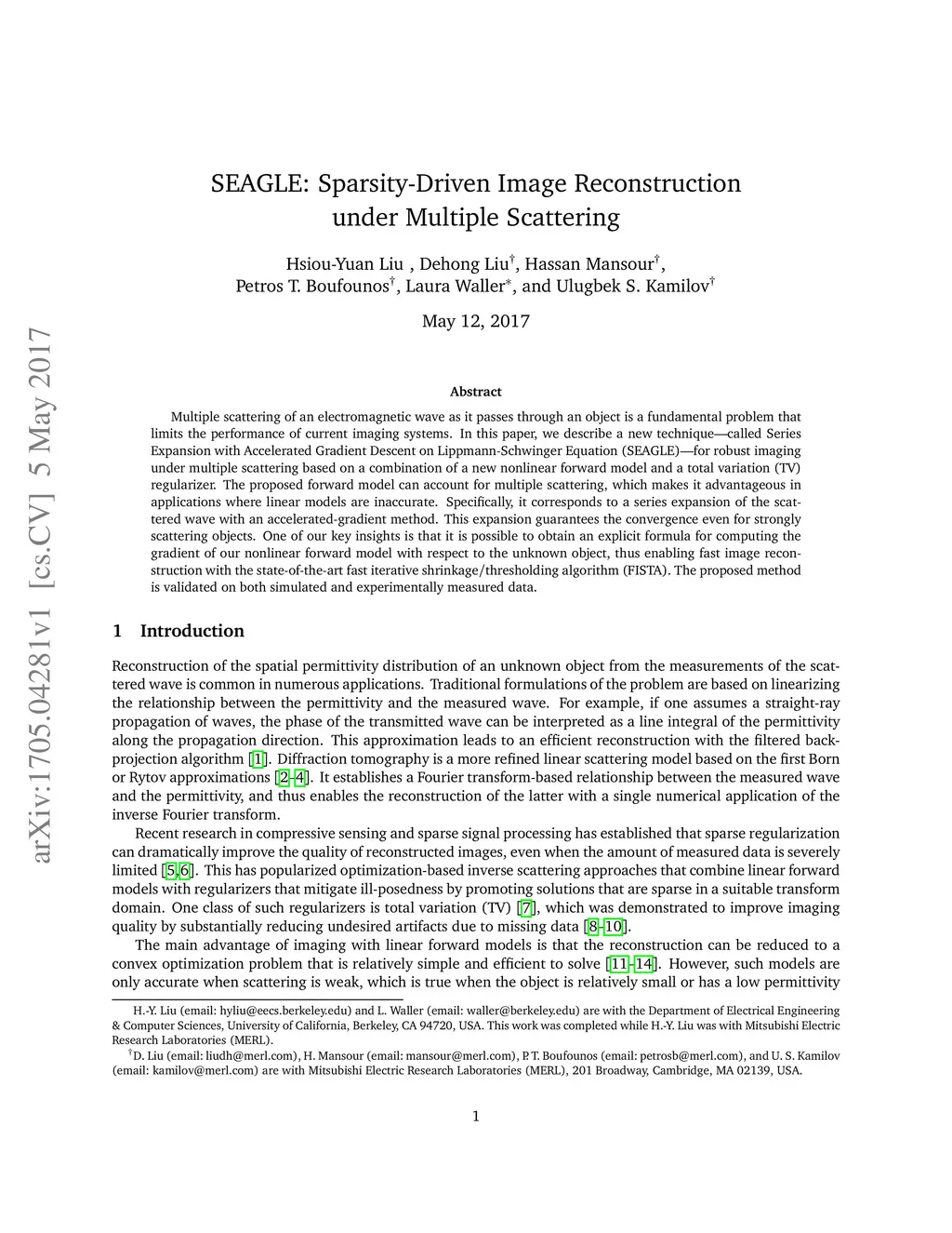 SEAGLE: Sparsity-Driven Image Reconstruction under Multiple Scattering