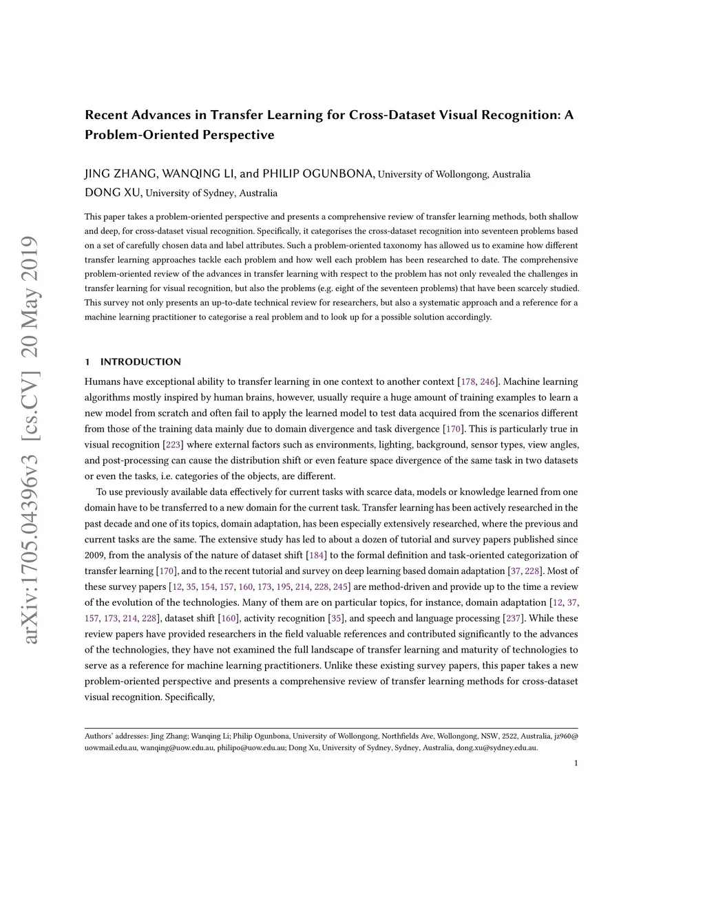 Recent Advances in Transfer Learning for Cross-Dataset Visual