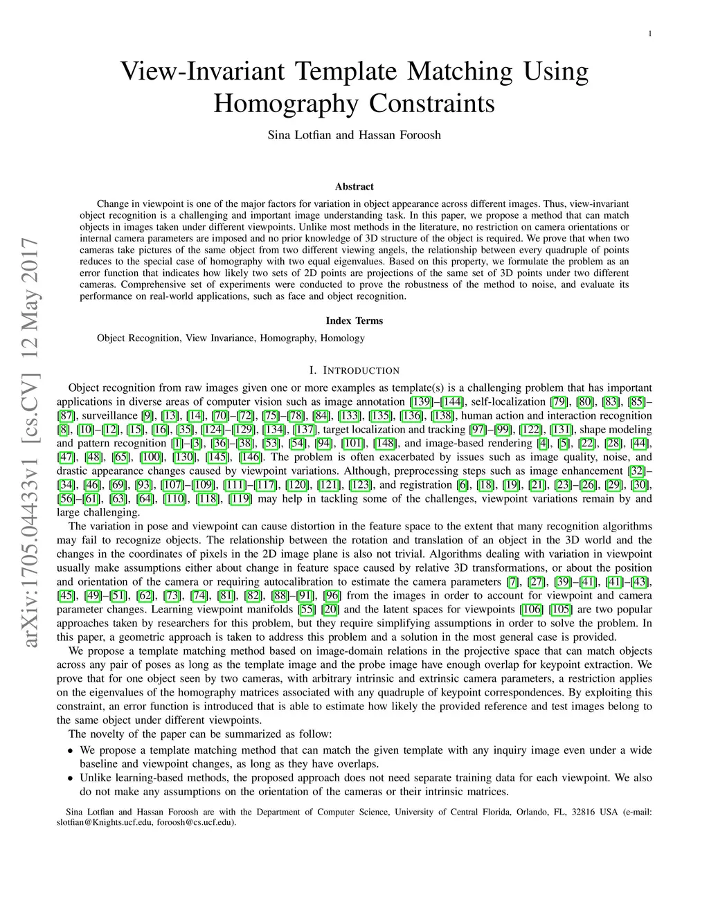 View-Invariant Template Matching Using Homography Constraints