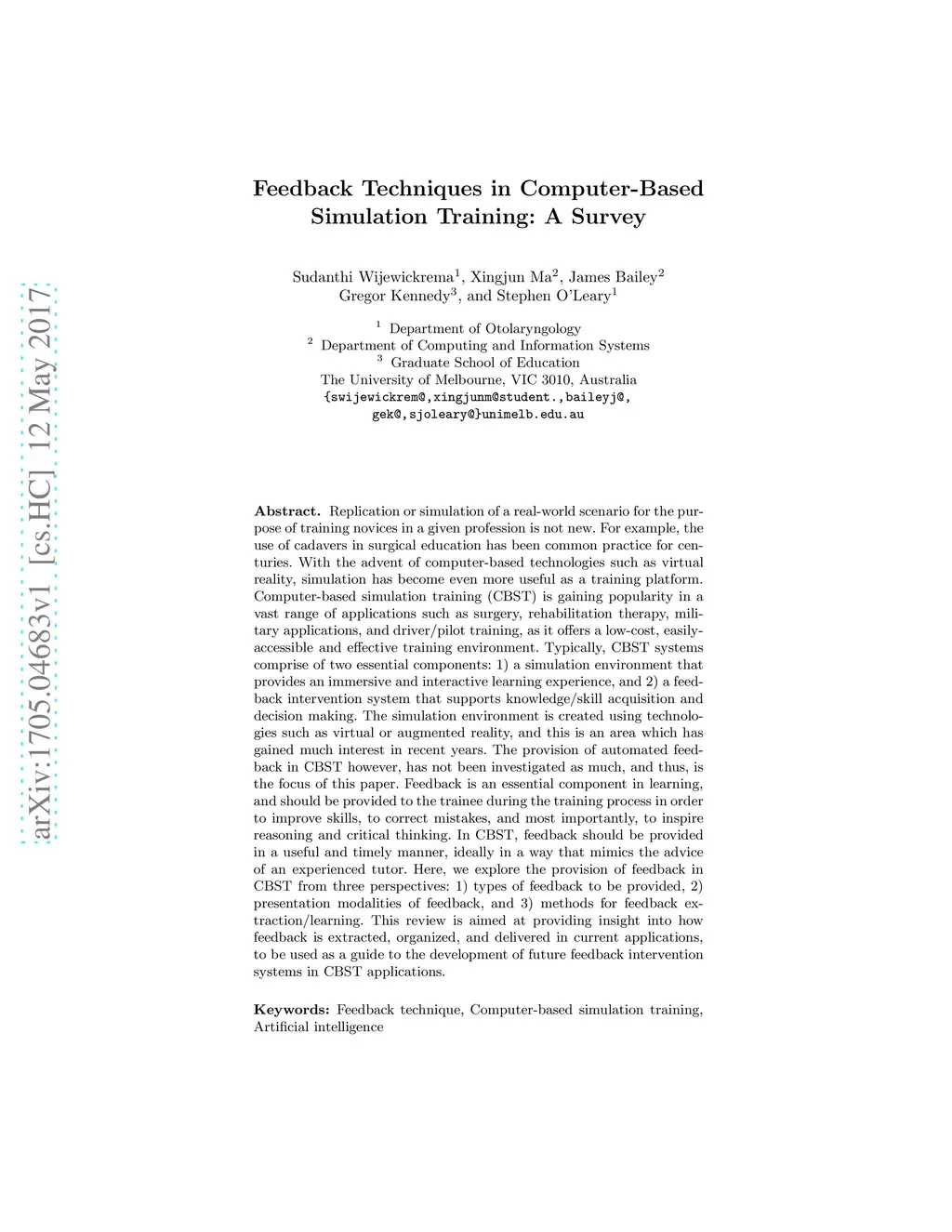 Feedback Techniques in Computer-Based Simulation Training: A Survey