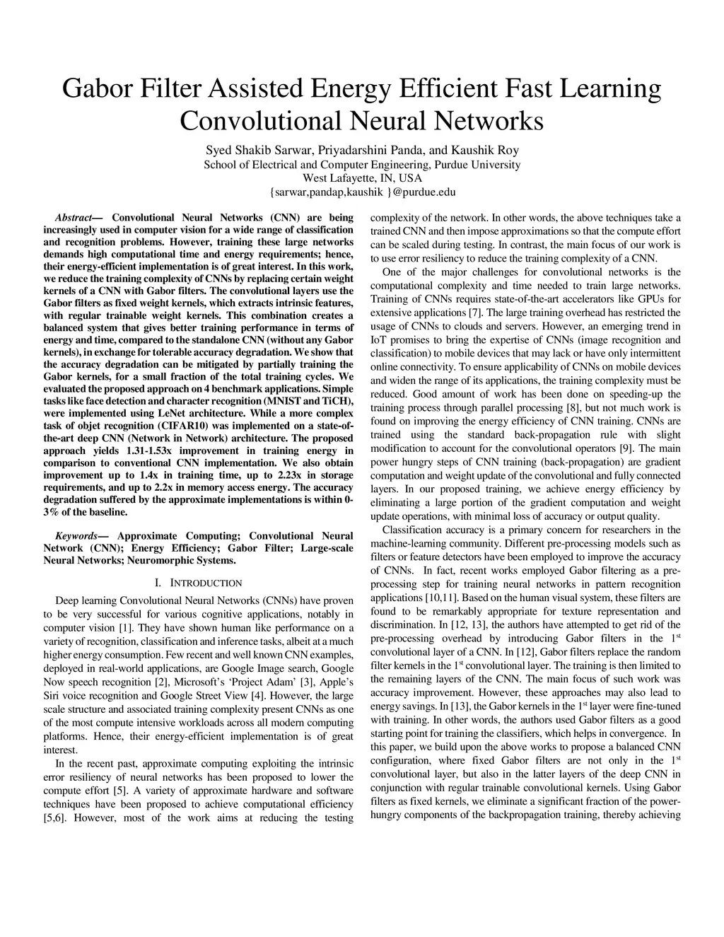 Gabor Filter Assisted Energy Efficient Fast Learning Convolutional