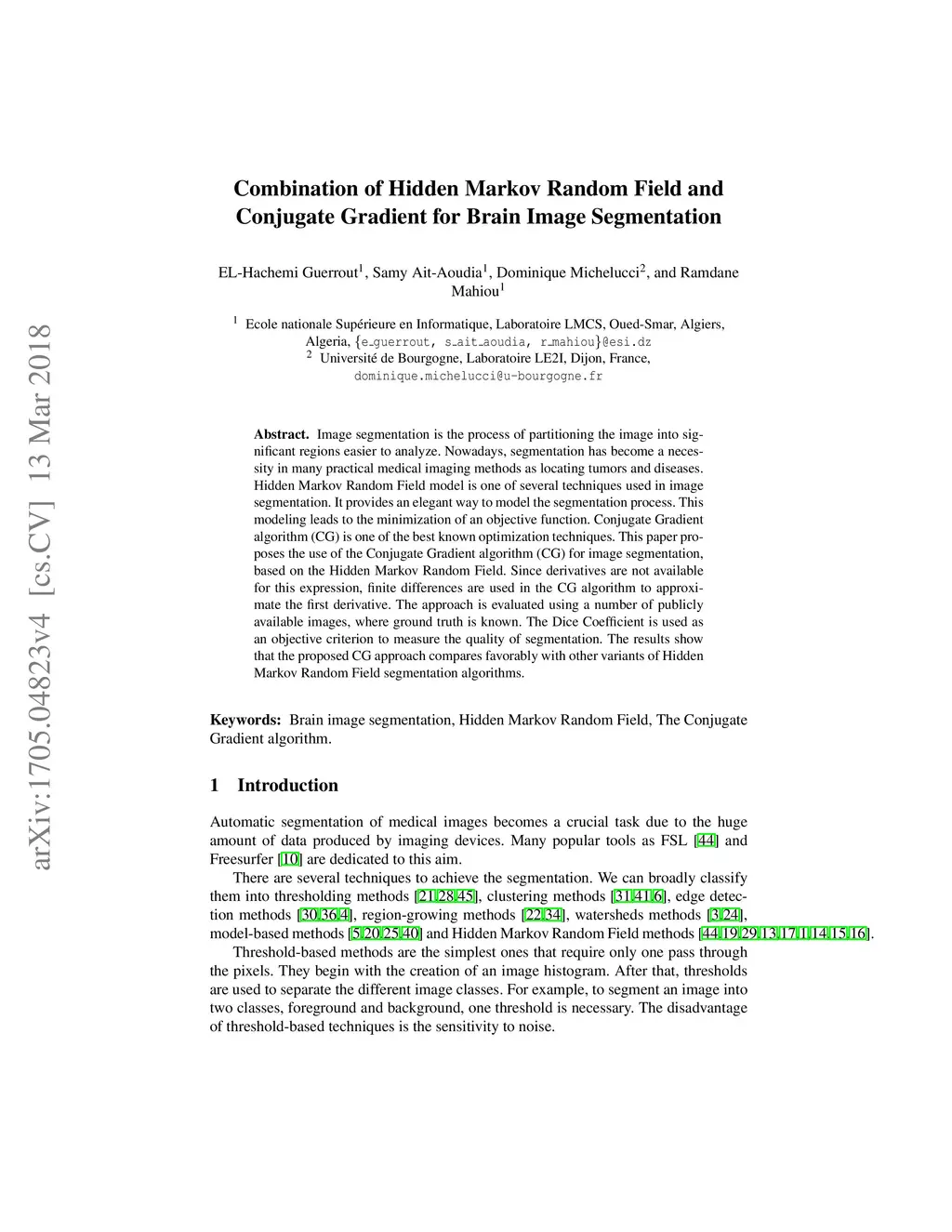 Combination of Hidden Markov Random Field and Conjugate Gradient for