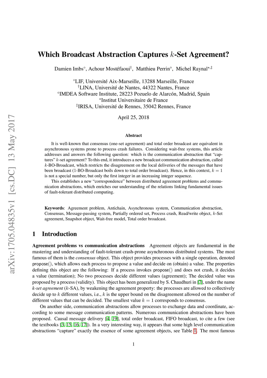 It is well-known that consensus (one-set agreement) and total order broadcast are equivalent in asynchronous systems prone to process crash failures. Considering wait-free systems, this article addresses and answers the following question: which is the communication abstraction that "captures" -set agreement? To this end, it introduces a new broadcast communication abstraction, called -BO-Broadcast, which restricts the disagreement on the local deliveries of the messages that have been broadcast (-BO-Broadcast boils down to total order broadcast). Hence, in this context, is not a special number, but only the first integer in an increasing integer sequence. This establishes a new "correspondence" between distributed agreement problems and communication abstractions, which enriches our understanding of the relations linking fundamental issues of fault-tolerant distributed computing.