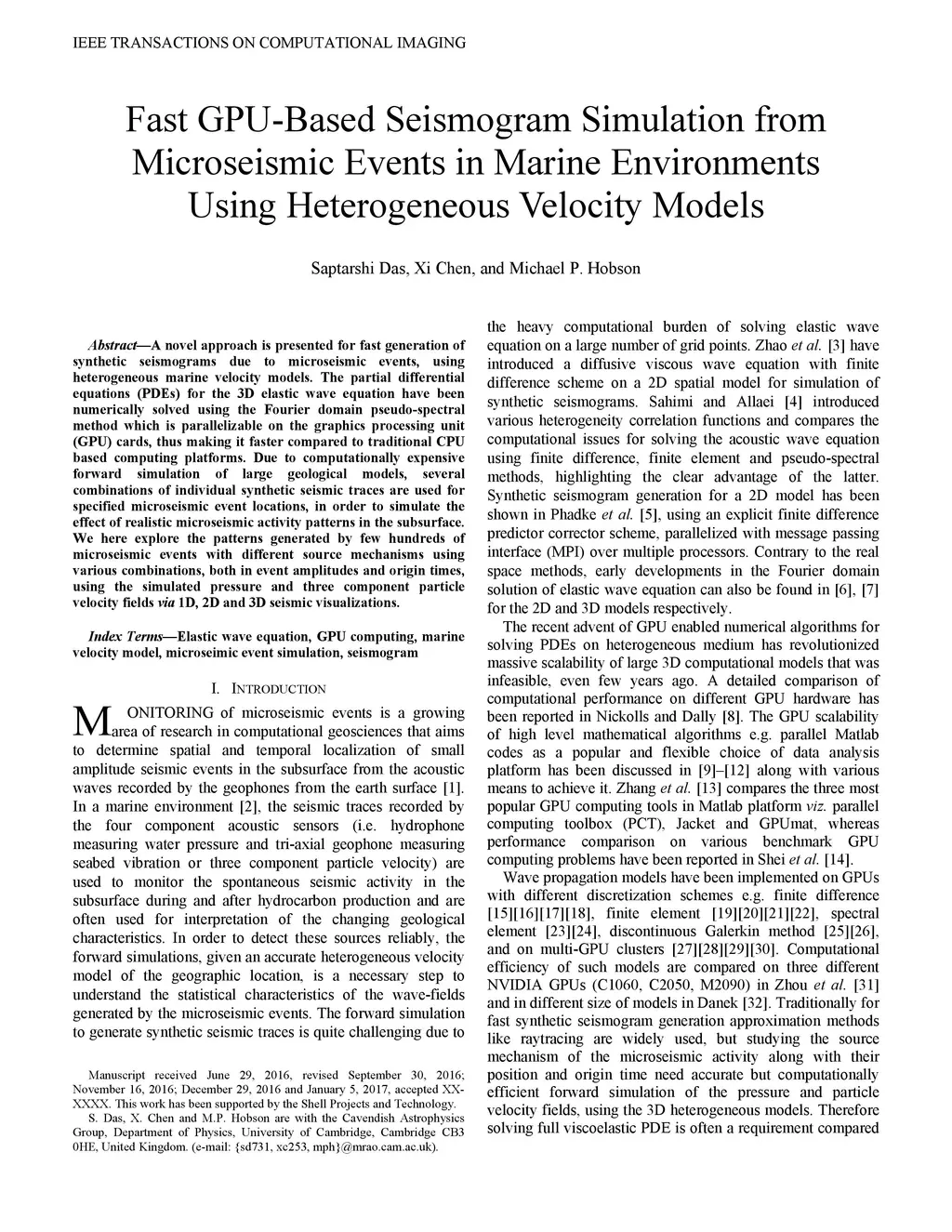 Fast GPU-Based Seismogram Simulation from Microseismic Events in Marine