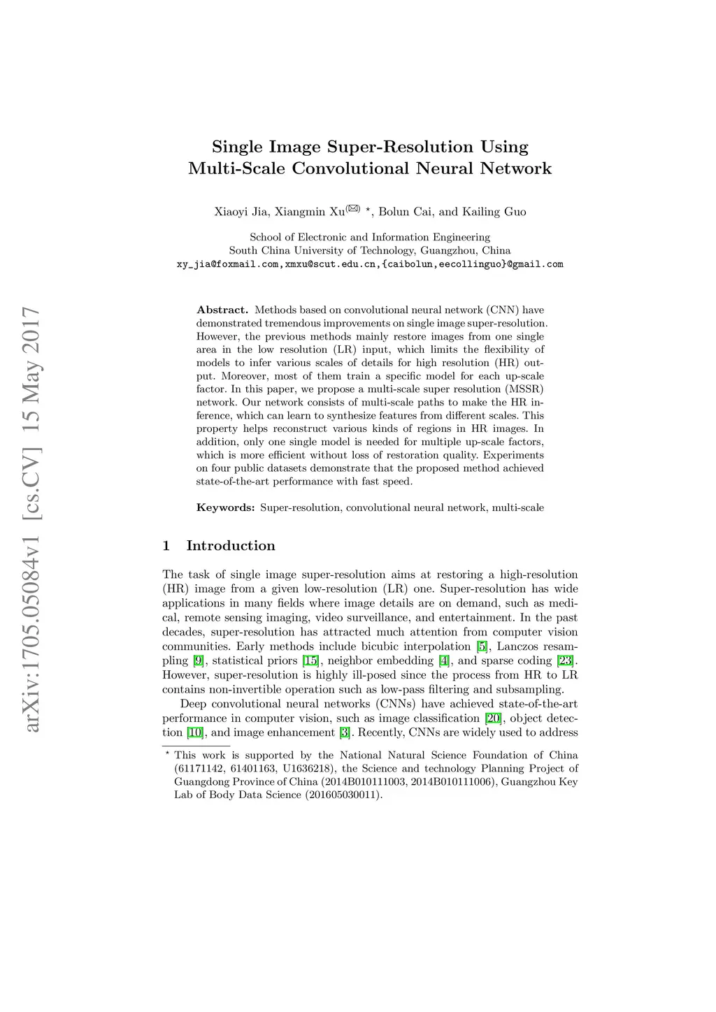 Single Image Super-Resolution Using Multi-Scale Convolutional Neural