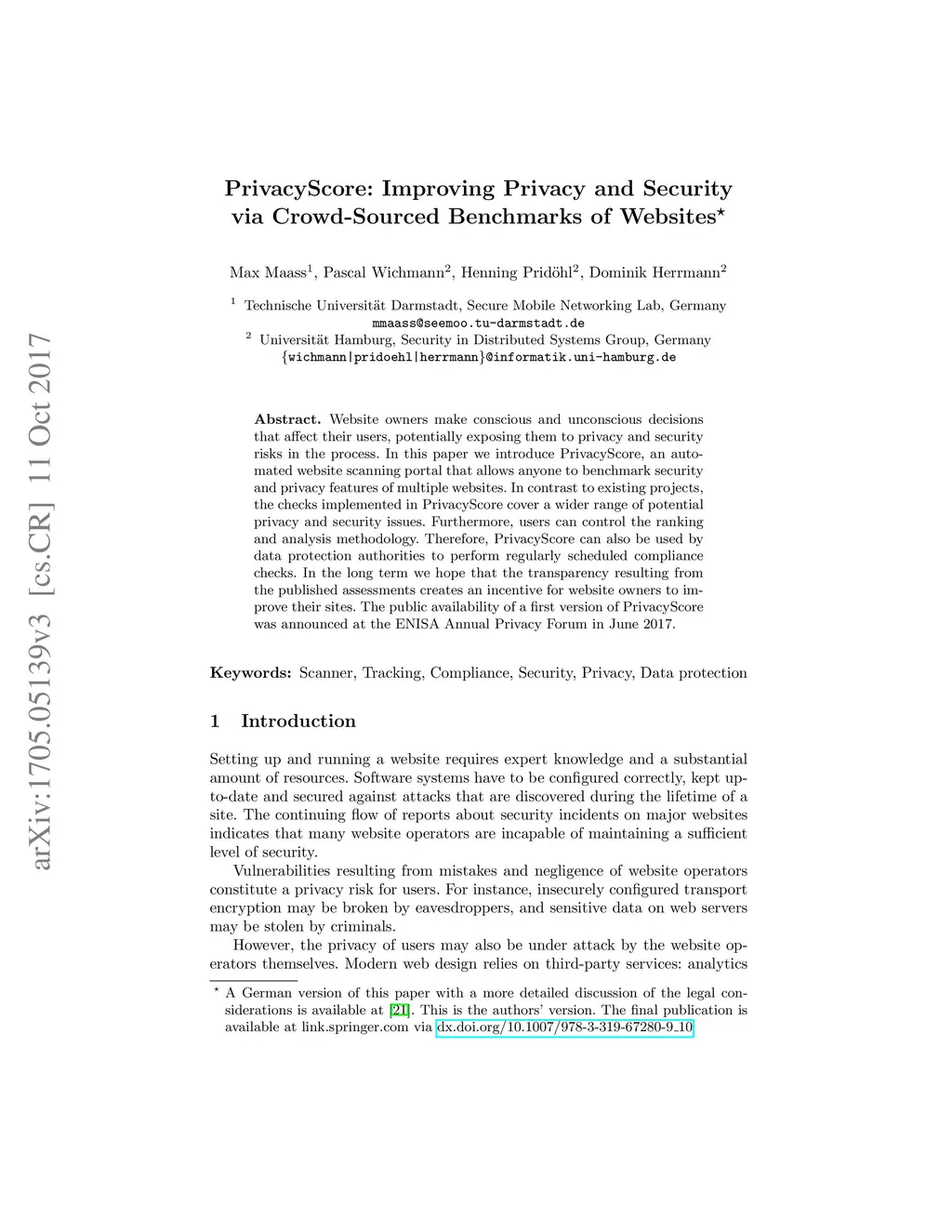 PrivacyScore: Improving Privacy and Security via Crowd-Sourced