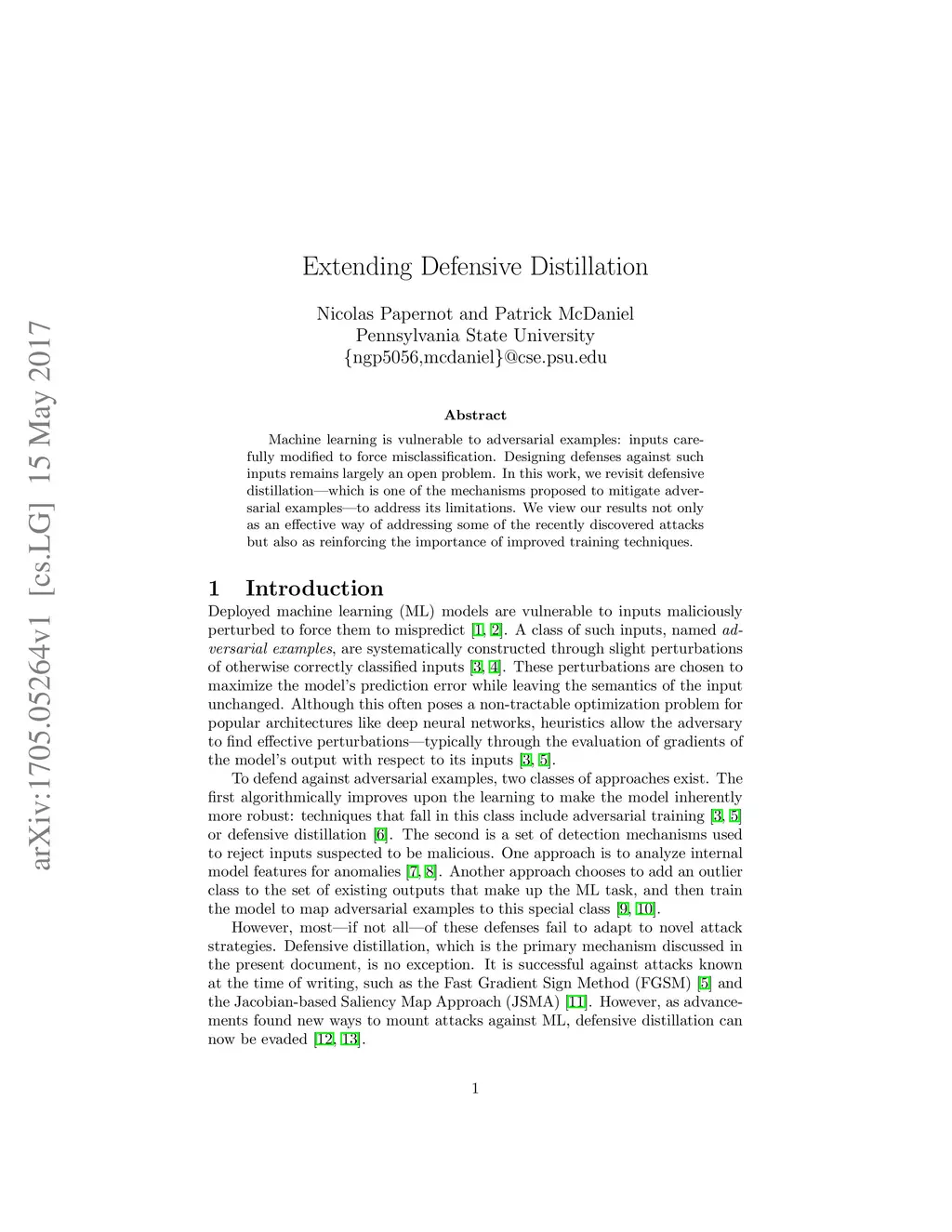 Machine learning is vulnerable to adversarial examples: inputs carefully modified to force misclassification. Designing defenses against such inputs remains largely an open problem. In this work, we revisit defensive distillation---which is one of the mechanisms proposed to mitigate adversarial examples---to address its limitations. We view our results not only as an effective way of addressing some of the recently discovered attacks but also as reinforcing the importance of improved training techniques.