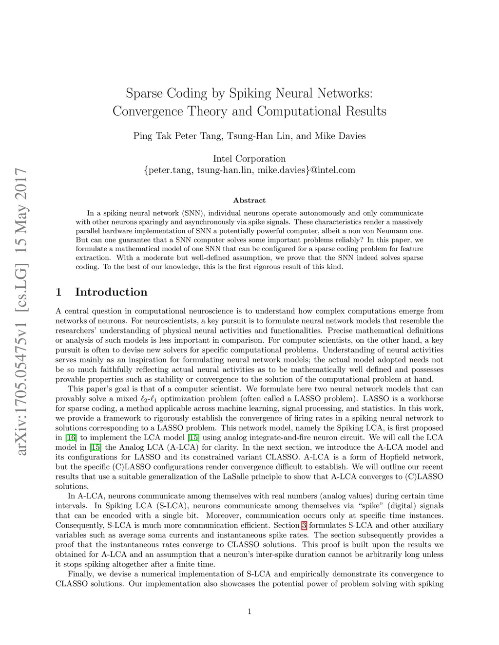Sparse Coding by Spiking Neural Networks: Convergence Theory and