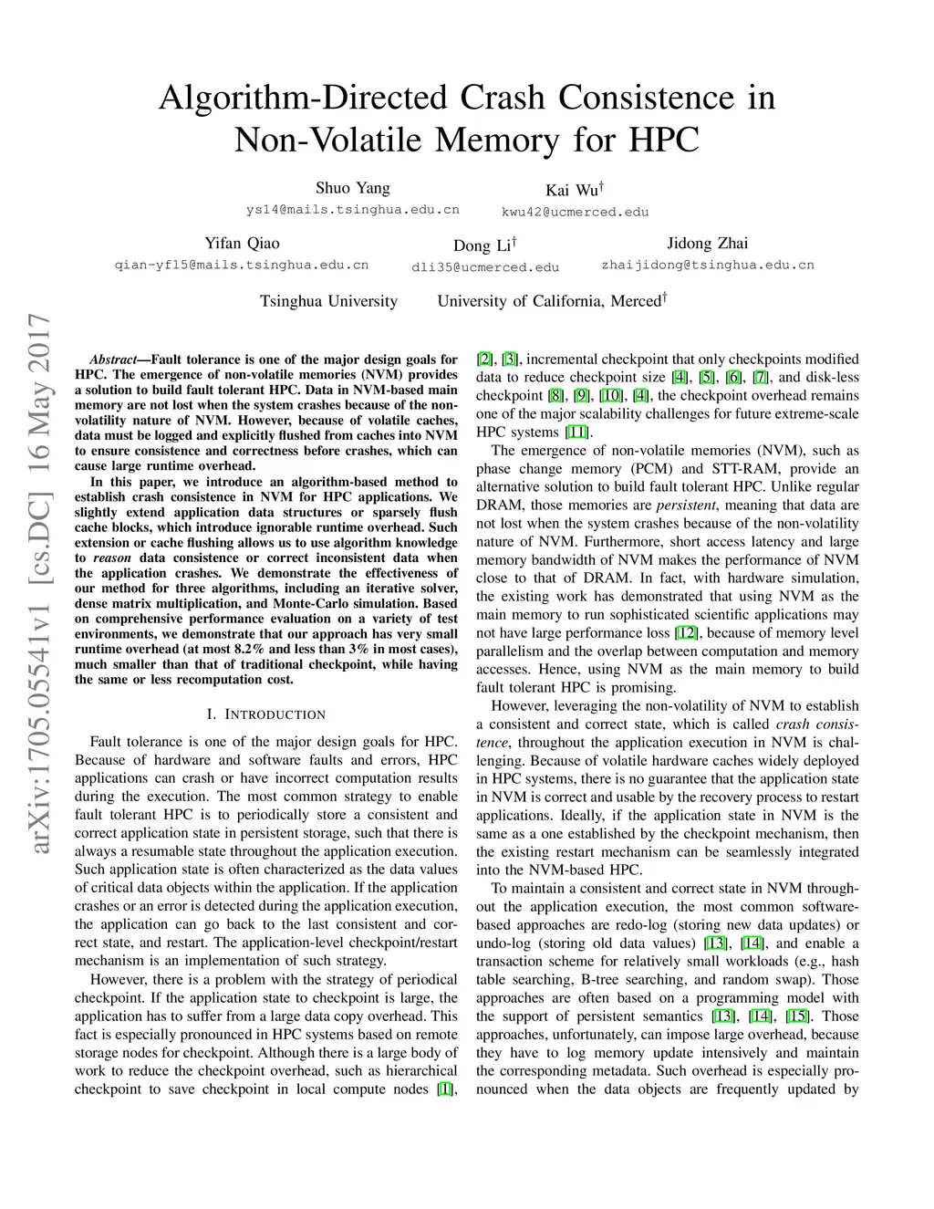 Algorithm-Directed Crash Consistence in Non-Volatile Memory for HPC