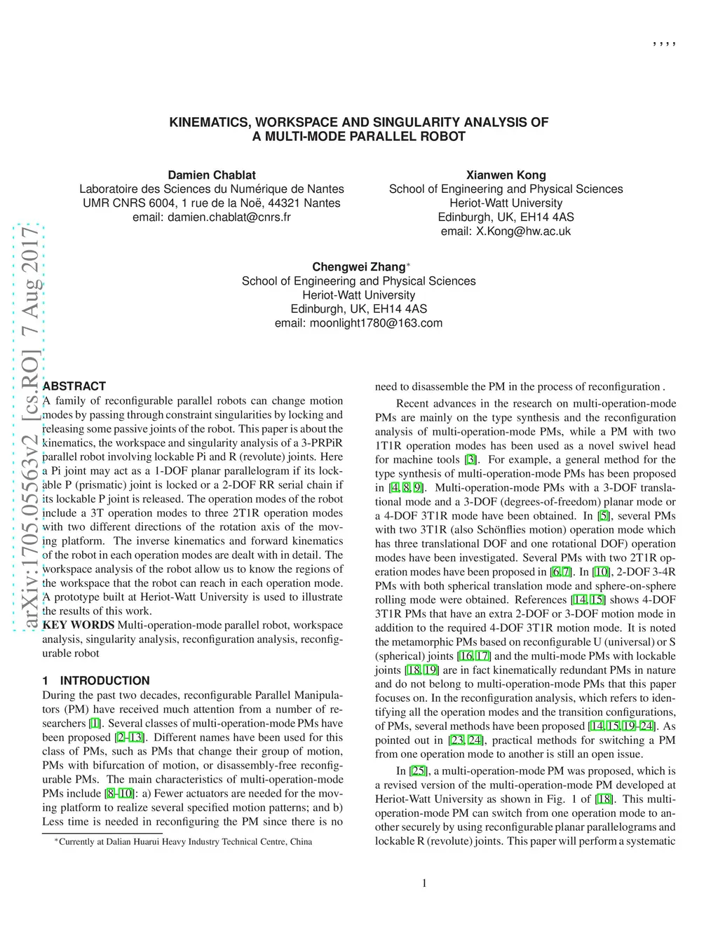 Kinematics, workspace and singularity analysis of a multi-mode parallel
