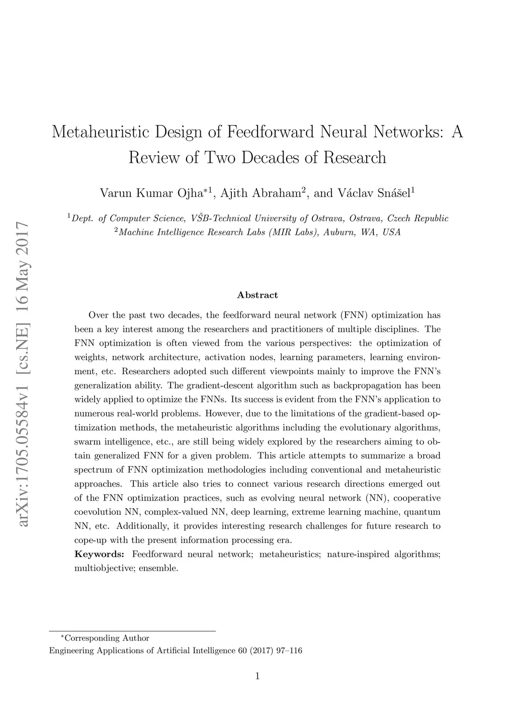 Metaheuristic Design of Feedforward Neural Networks: A Review of Two