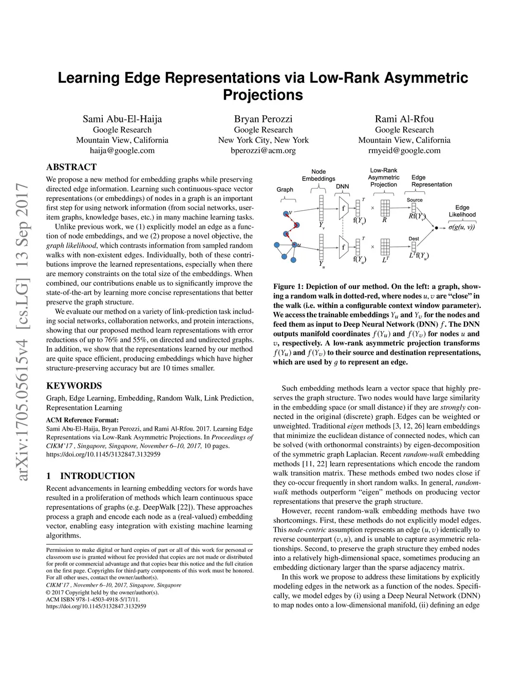 Learning Edge Representations via Low-Rank Asymmetric Projections