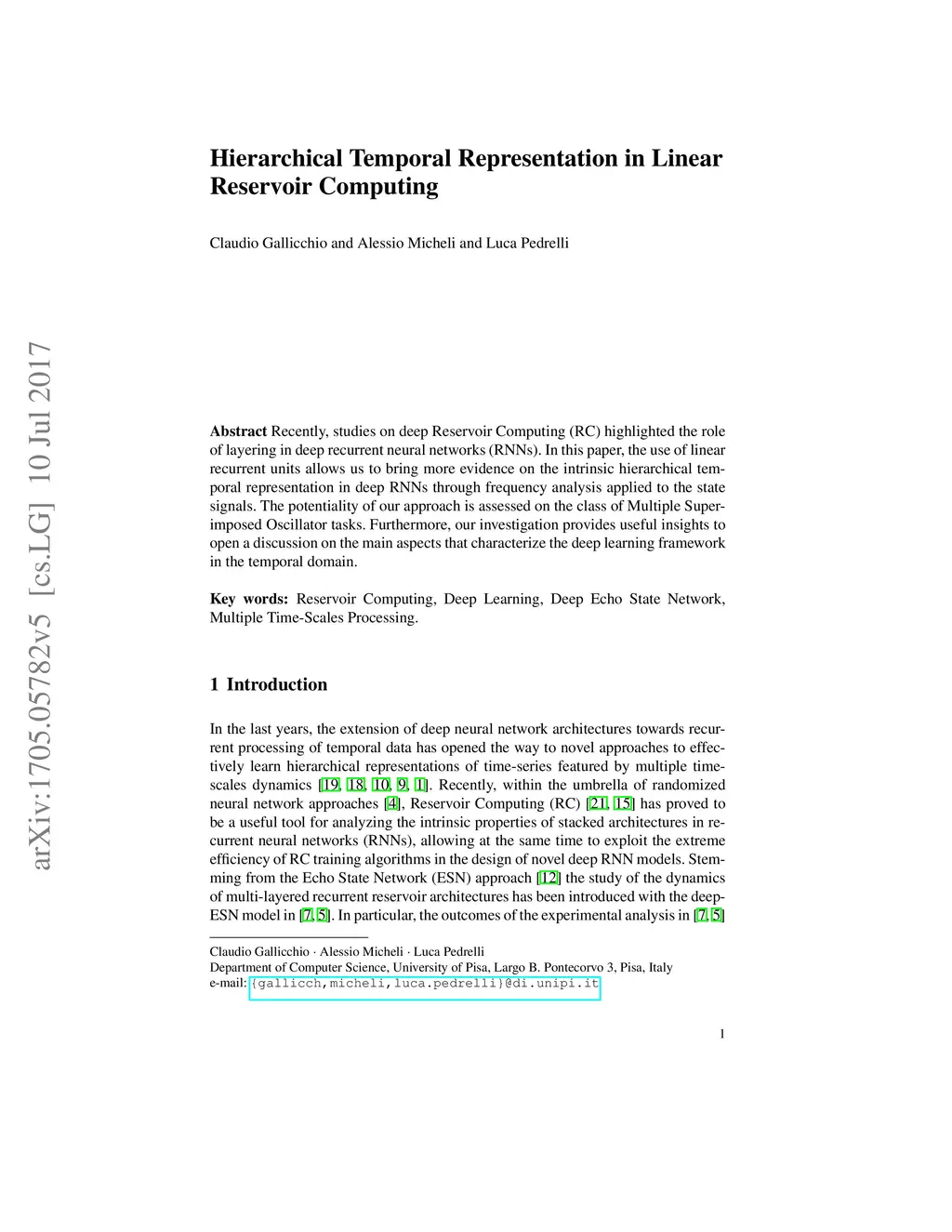 Recently, studies on deep Reservoir Computing (RC) highlighted the role of layering in deep recurrent neural networks (RNNs). In this paper, the use of linear recurrent units allows us to bring more evidence on the intrinsic hierarchical temporal representation in deep RNNs through frequency analysis applied to the state signals. The potentiality of our approach is assessed on the class of Multiple Superimposed Oscillator tasks. Furthermore, our investigation provides useful insights to open a discussion on the main aspects that characterize the deep learning framework in the temporal domain.
