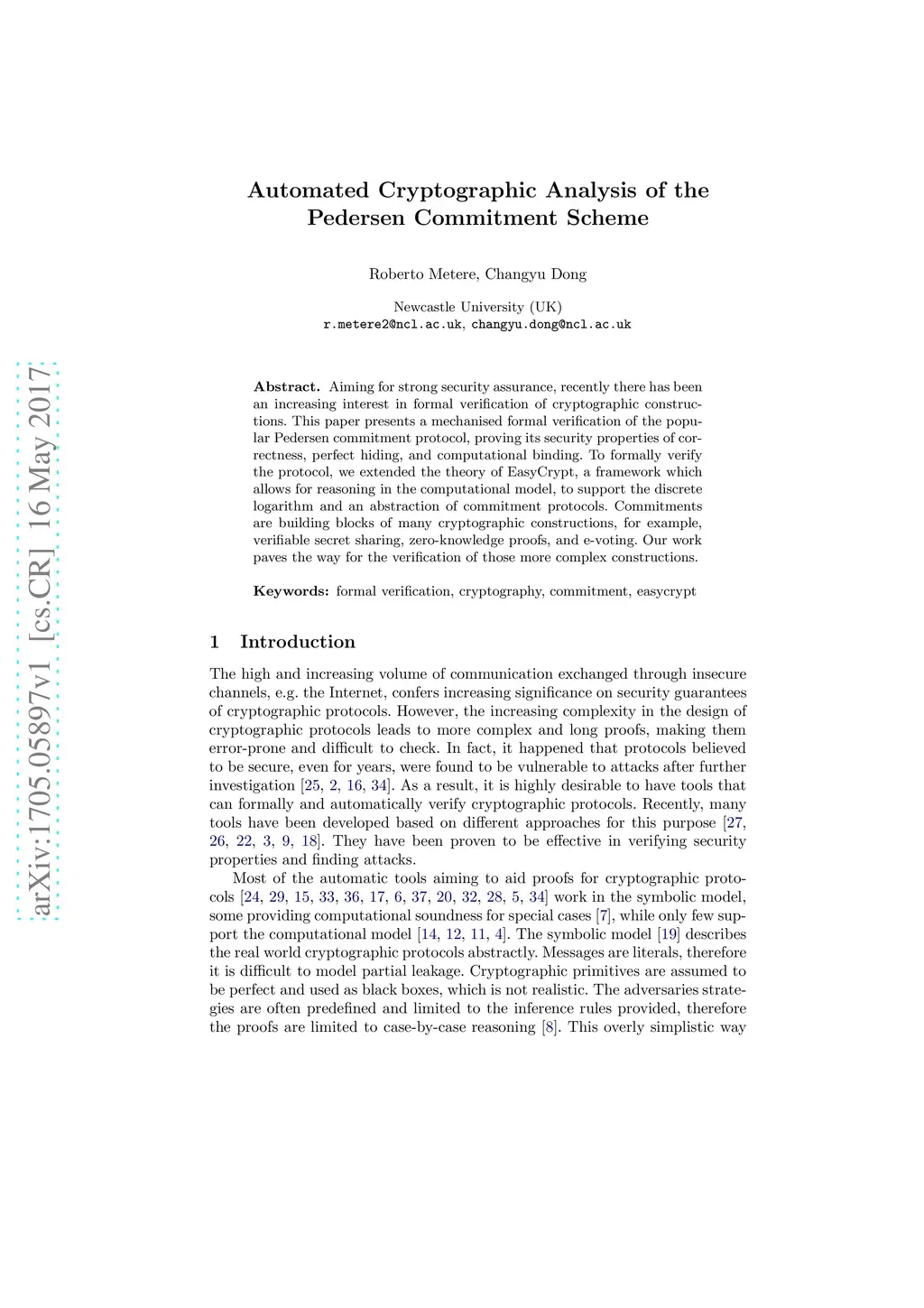 Automated Cryptographic Analysis of the Pedersen Commitment Scheme