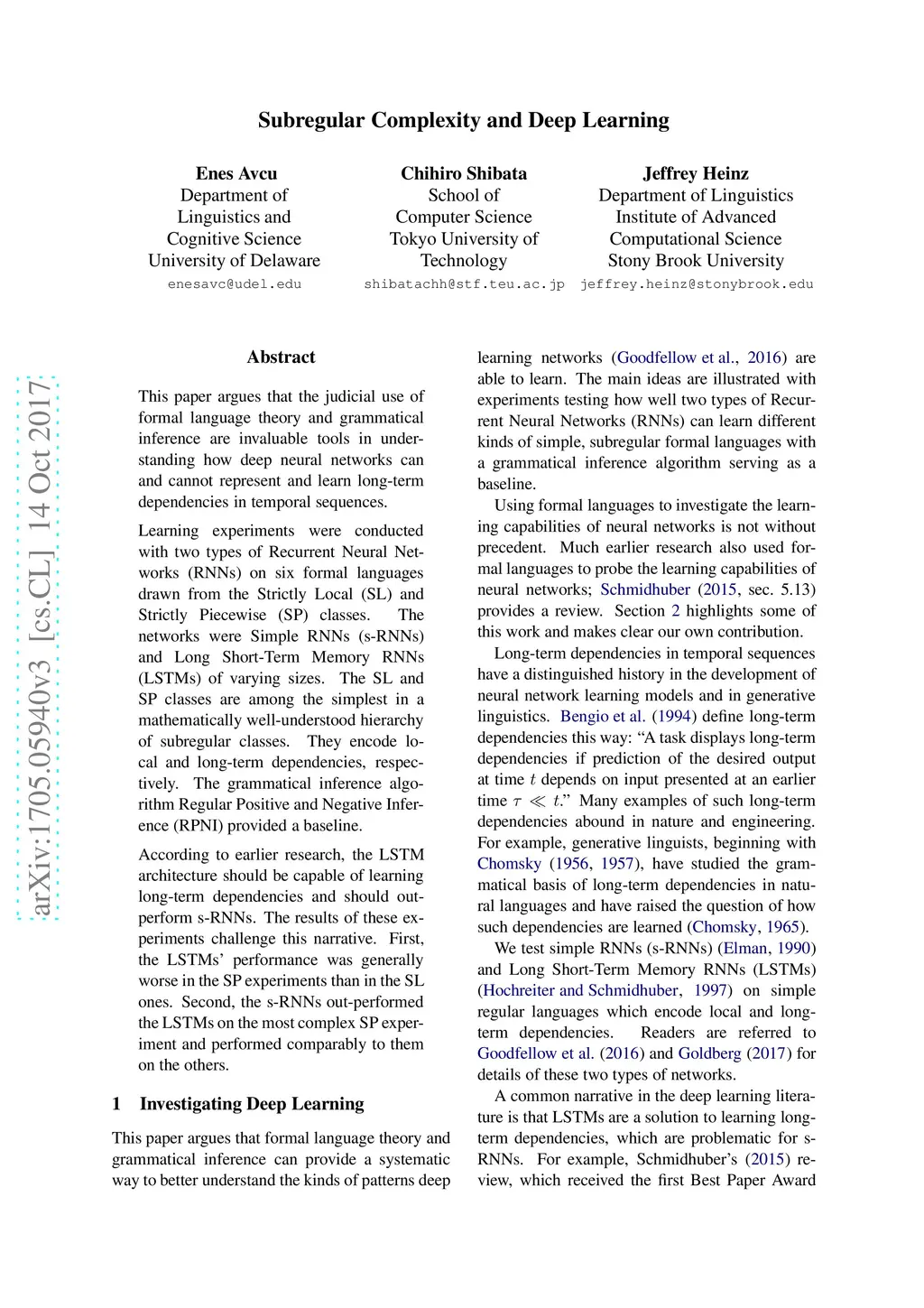 Subregular Complexity and Deep Learning
