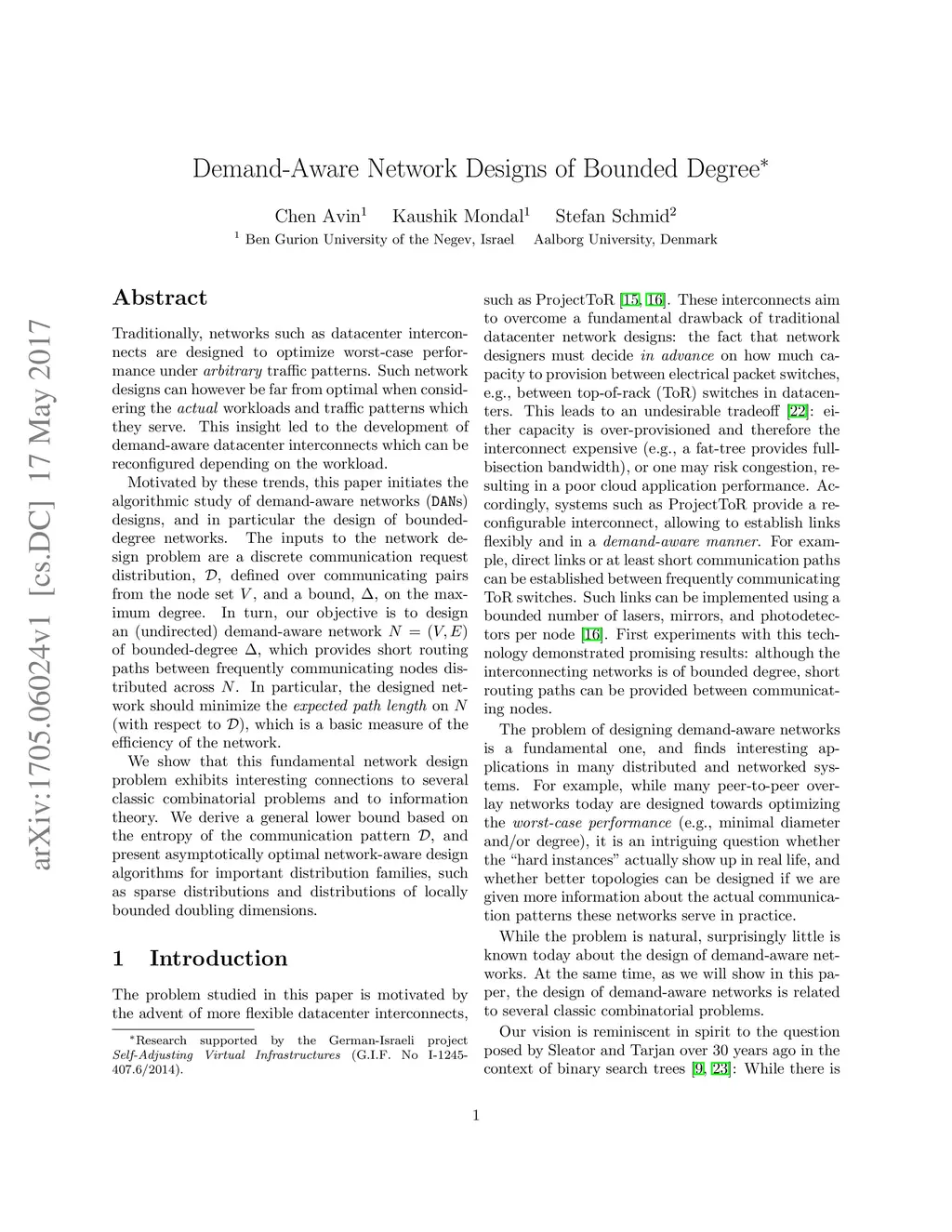 Traditionally, networks such as datacenter interconnects are designed to optimize worst-case performance under arbitrary traffic patterns. Such network designs can however be far from optimal when considering the actual workloads and traffic patterns which they serve. This insight led to the development of demand-aware datacenter interconnects which can be reconfigured depending on the workload. Motivated by these trends, this paper initiates the algorithmic study of demand-aware networks (DANs) designs, and in particular the design of bounded-degree networks. The inputs to the network design problem are a discrete communication request distribution, D, defined over communicating pairs from the node set V , and a bound, d, on the maximum degree. In turn, our objective is to design an (undirected) demand-aware network N = (V,E) of bounded-degree d, which provides short routing paths between frequently communicating nodes distributed across N. In particular, the designed network should minimize the expected path length on N (with respect to D), which is a basic measure of the efficiency of the network. We show that this fundamental network design problem exhibits interesting connections to several classic combinatorial problems and to information theory. We derive a general lower bound based on the entropy of the communication pattern D, and present asymptotically optimal network-aware design algorithms for important distribution families, such as sparse distributions and distributions of locally bounded doubling dimensions.