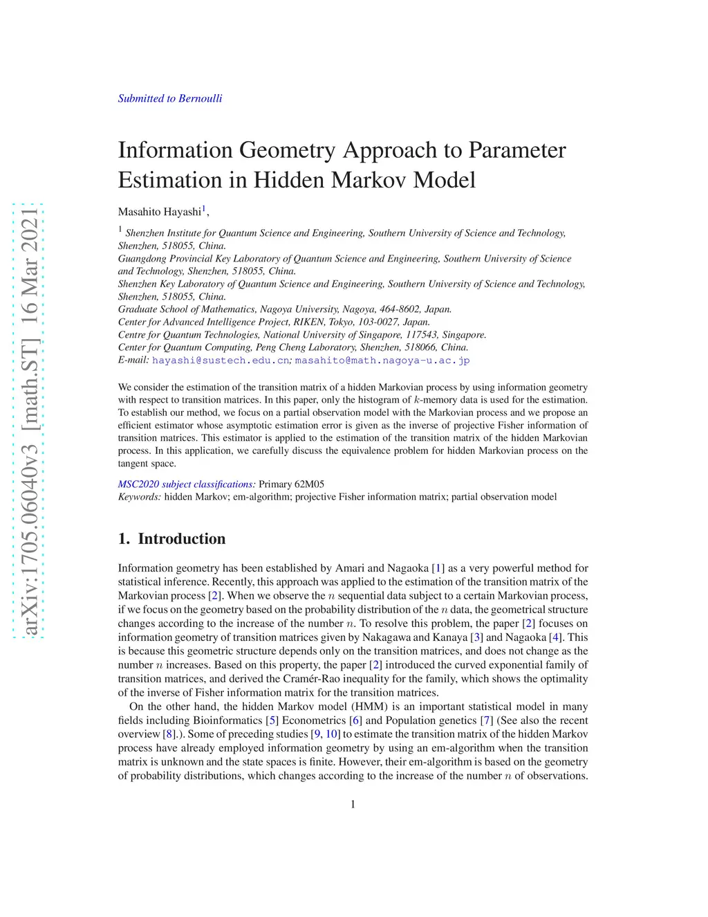 Information Geometry Approach to Parameter Estimation in Hidden Markov
