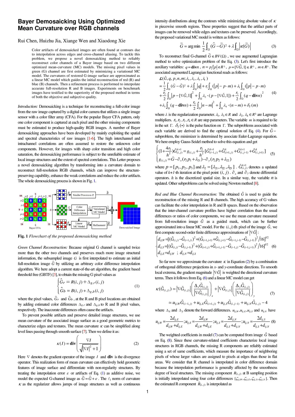 Bayer Demosaicking Using Optimized Mean Curvature over RGB channels