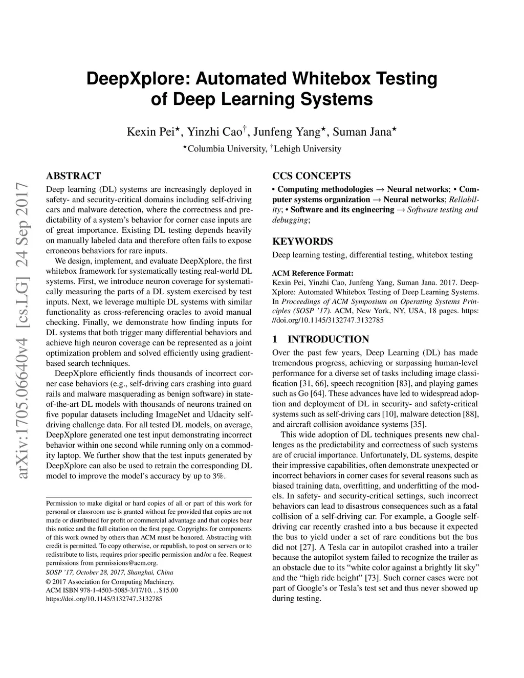 DeepXplore: Automated Whitebox Testing of Deep Learning Systems