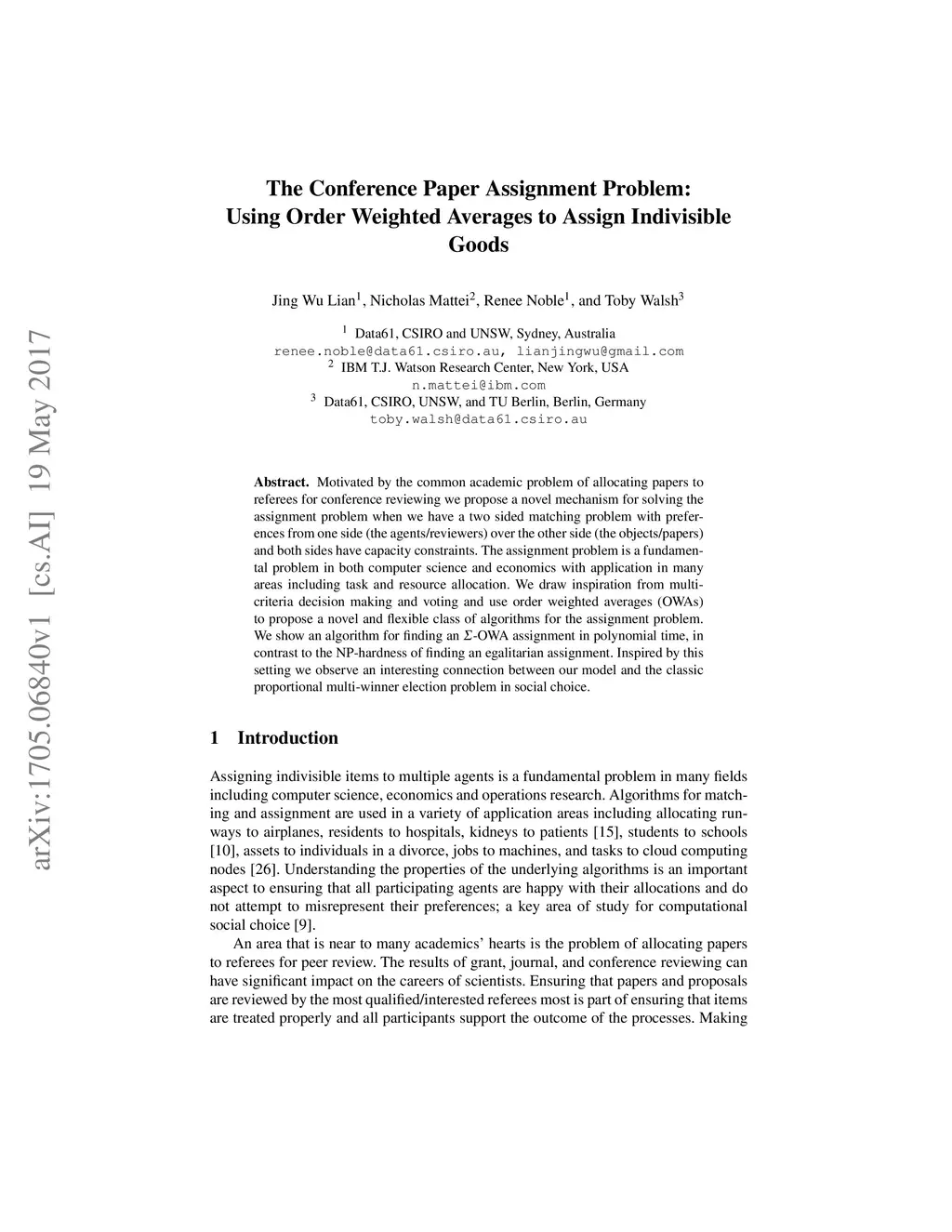 The Conference Paper Assignment Problem: Using Order Weighted Averages