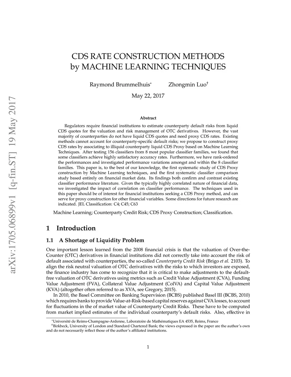 Regulators require financial institutions to estimate counterparty default risks from liquid CDS quotes for the valuation and risk management of OTC derivatives. However, the vast majority of counterparties do not have liquid CDS quotes and need proxy CDS rates. Existing methods cannot account for counterparty-specific default risks; we propose to construct proxy CDS rates by associating to illiquid counterparty liquid CDS Proxy based on Machine Learning Techniques. After testing 156 classifiers from 8 most popular classifier families, we found that some classifiers achieve highly satisfactory accuracy rates. Furthermore, we have rank-ordered the performances and investigated performance variations amongst and within the 8 classifier families. This paper is, to the best of our knowledge, the first systematic study of CDS Proxy construction by Machine Learning techniques, and the first systematic classifier comparison study based entirely on financial market data. Its findings both confirm and contrast existing classifier performance literature. Given the typically highly correlated nature of financial data, we investigated the impact of correlation on classifier performance. The techniques used in this paper should be of interest for financial institutions seeking a CDS Proxy method, and can serve for proxy construction for other financial variables. Some directions for future research are indicated.