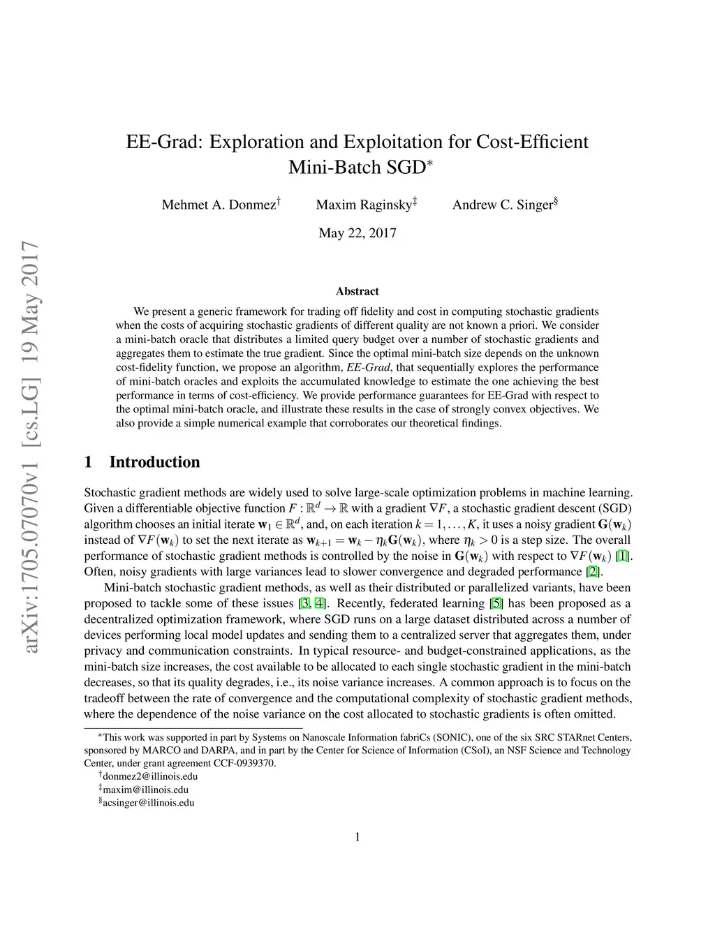 EE-Grad: Exploration and Exploitation for Cost-Efficient Mini-Batch SGD