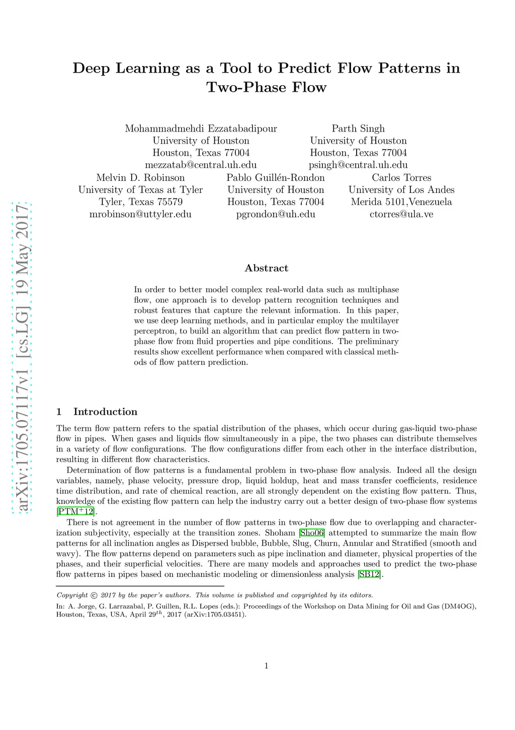 In order to better model complex real-world data such as multiphase flow, one approach is to develop pattern recognition techniques and robust features that capture the relevant information. In this paper, we use deep learning methods, and in particular employ the multilayer perceptron, to build an algorithm that can predict flow pattern in twophase flow from fluid properties and pipe conditions. The preliminary results show excellent performance when compared with classical methods of flow pattern prediction.