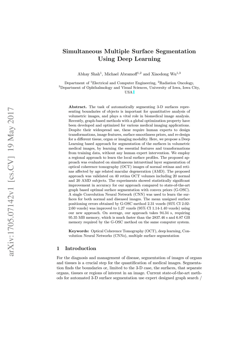 Simultaneous Multiple Surface Segmentation Using Deep Learning