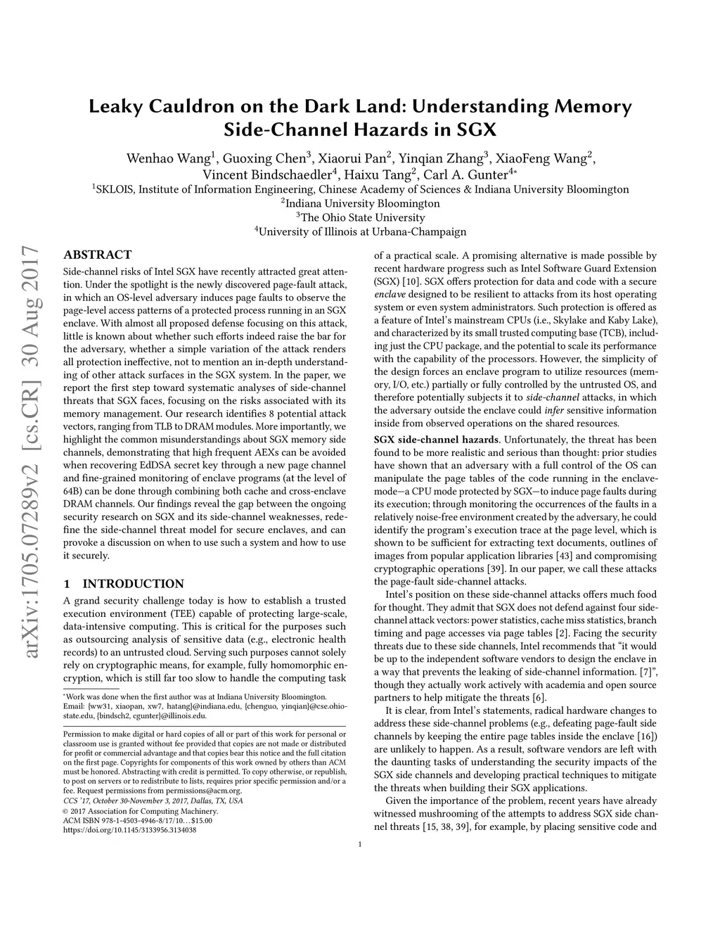 Side-channel risks of Intel's SGX have recently attracted great attention. Under the spotlight is the newly discovered page-fault attack, in which an OS-level adversary induces page faults to observe the page-level access patterns of a protected process running in an SGX enclave. With almost all proposed defense focusing on this attack, little is known about whether such efforts indeed raise the bar for the adversary, whether a simple variation of the attack renders all protection ineffective, not to mention an in-depth understanding of other attack surfaces in the SGX system. In the paper, we report the first step toward systematic analyses of side-channel threats that SGX faces, focusing on the risks associated with its memory management. Our research identifies 8 potential attack vectors, ranging from TLB to DRAM modules. More importantly, we highlight the common misunderstandings about SGX memory side channels, demonstrating that high frequent AEXs can be avoided when recovering EdDSA secret key through a new page channel and fine-grained monitoring of enclave programs (at the level of 64B) can be done through combining both cache and cross-enclave DRAM channels. Our findings reveal the gap between the ongoing security research on SGX and its side-channel weaknesses, redefine the side-channel threat model for secure enclaves, and can provoke a discussion on when to use such a system and how to use it securely.