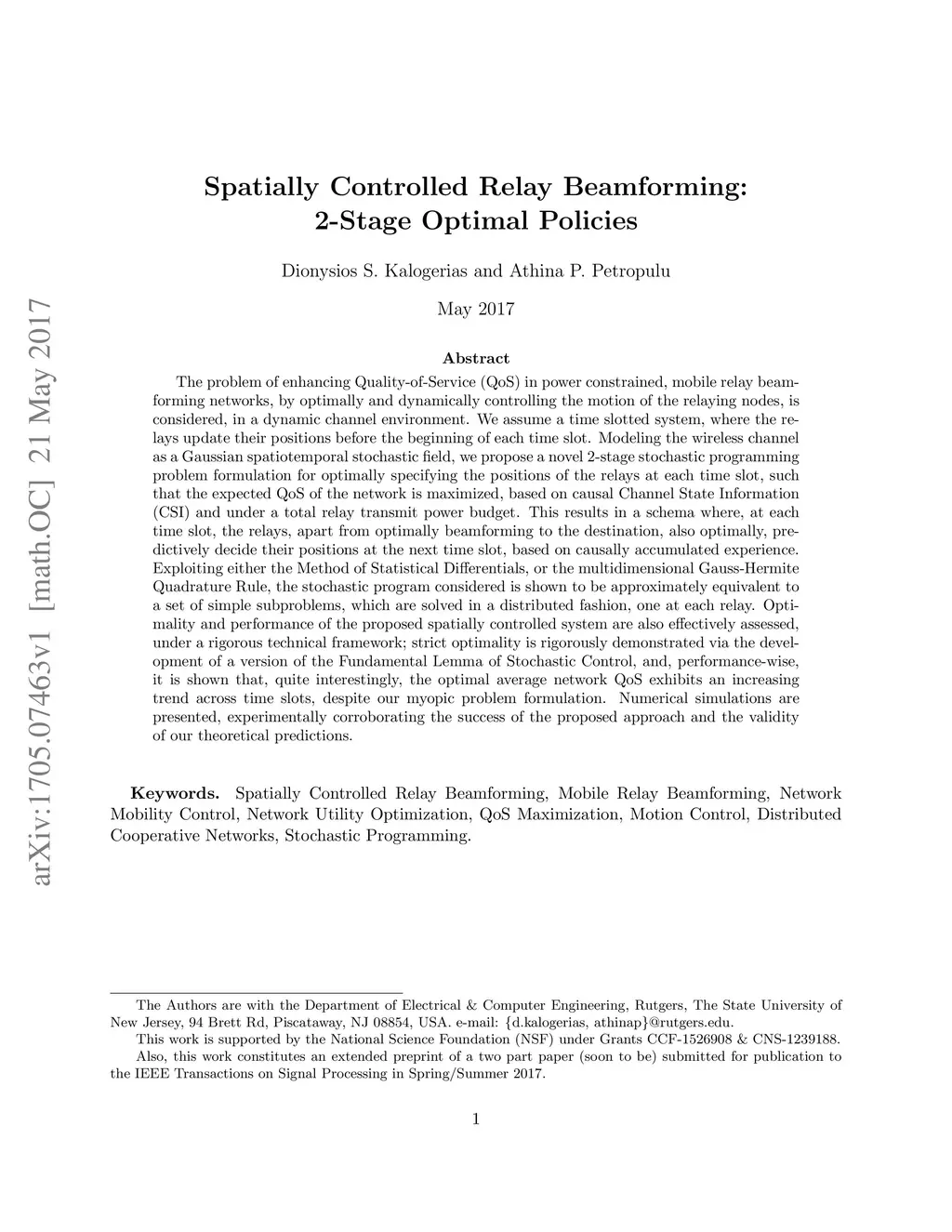 Spatially Controlled Relay Beamforming: -Stage Optimal Policies