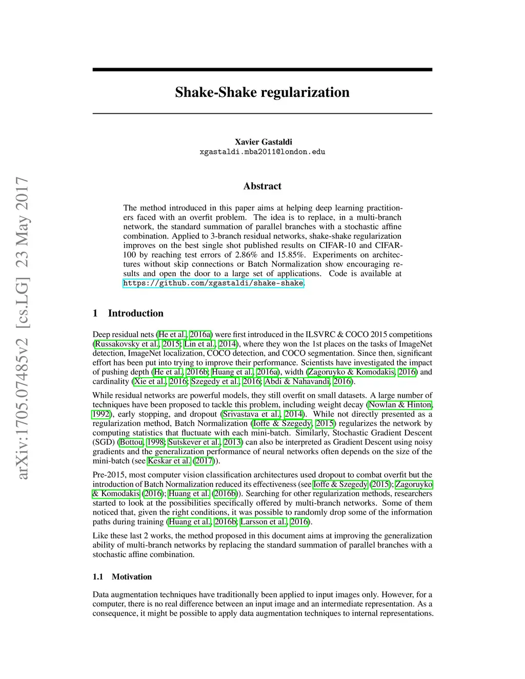 Shake-Shake regularization