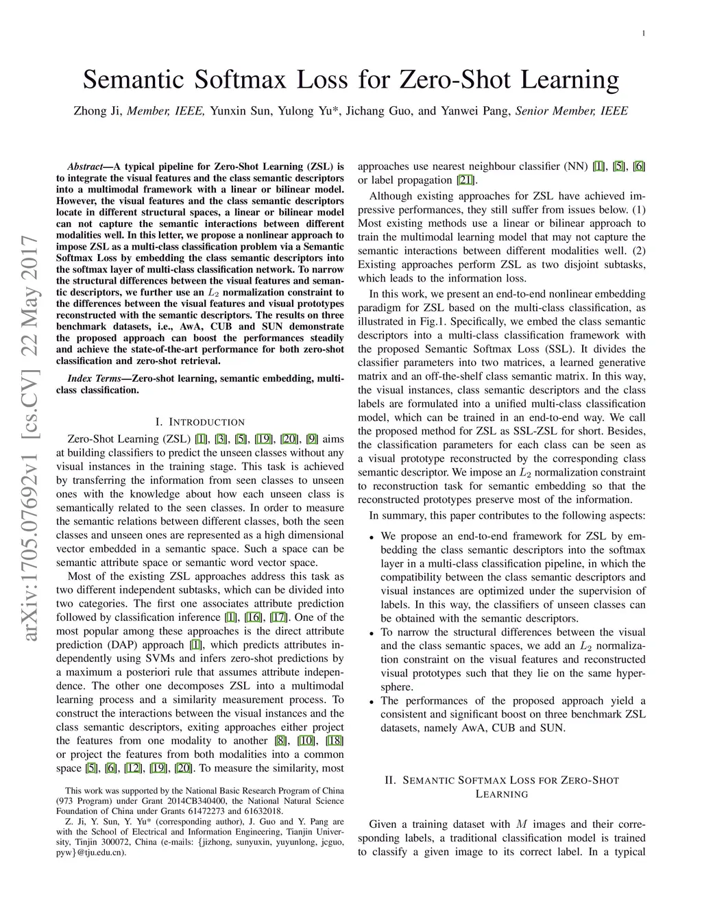 Semantic Softmax Loss for Zero-Shot Learning