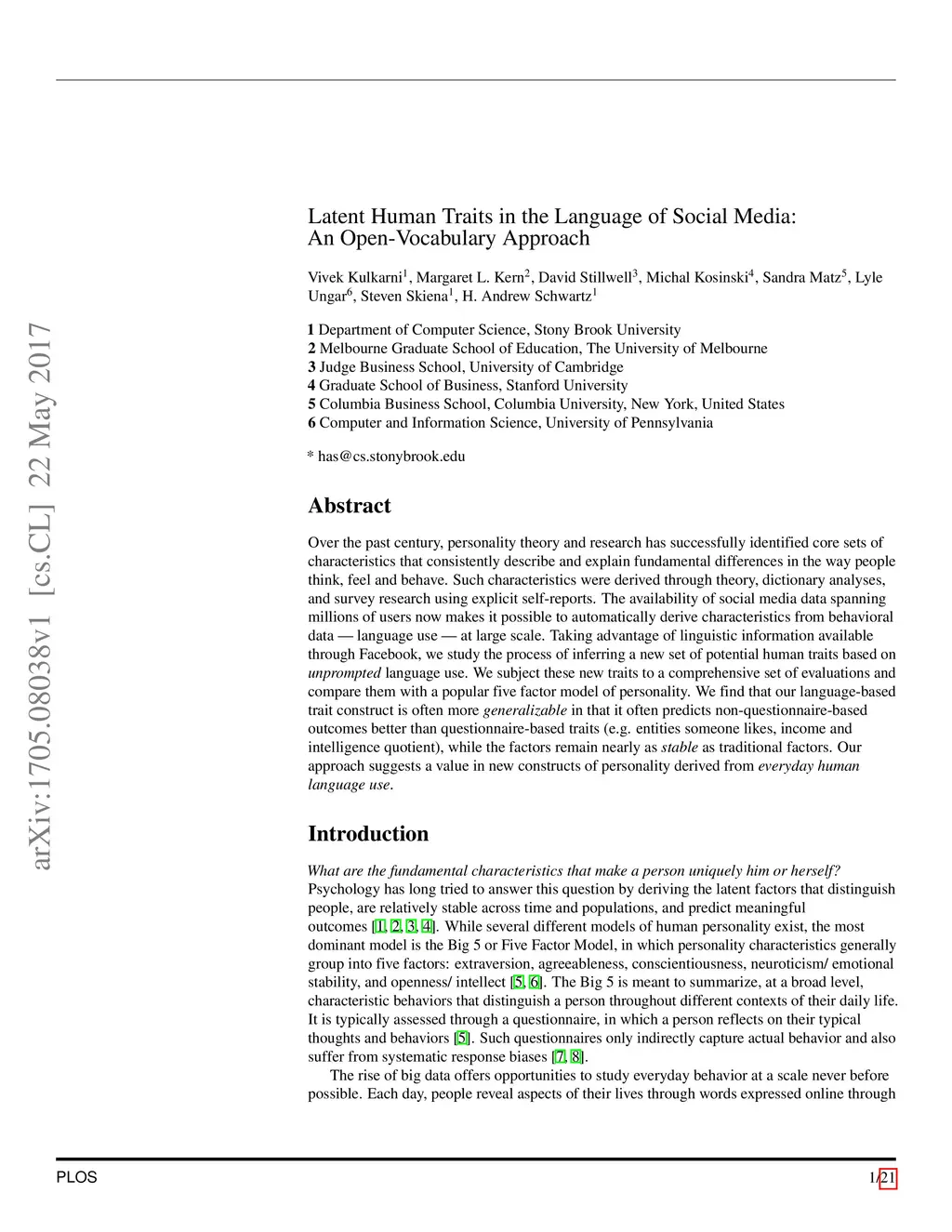 Latent Human Traits in the Language of Social Media: An Open-Vocabulary