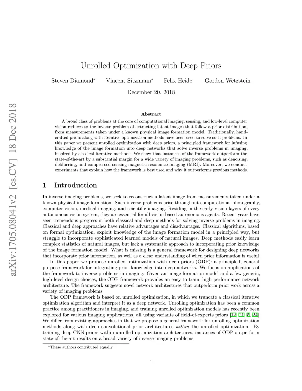Unrolled Optimization with Deep Priors