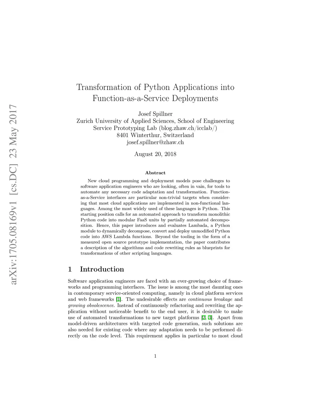 Transformation of Python Applications into Function-as-a-Service