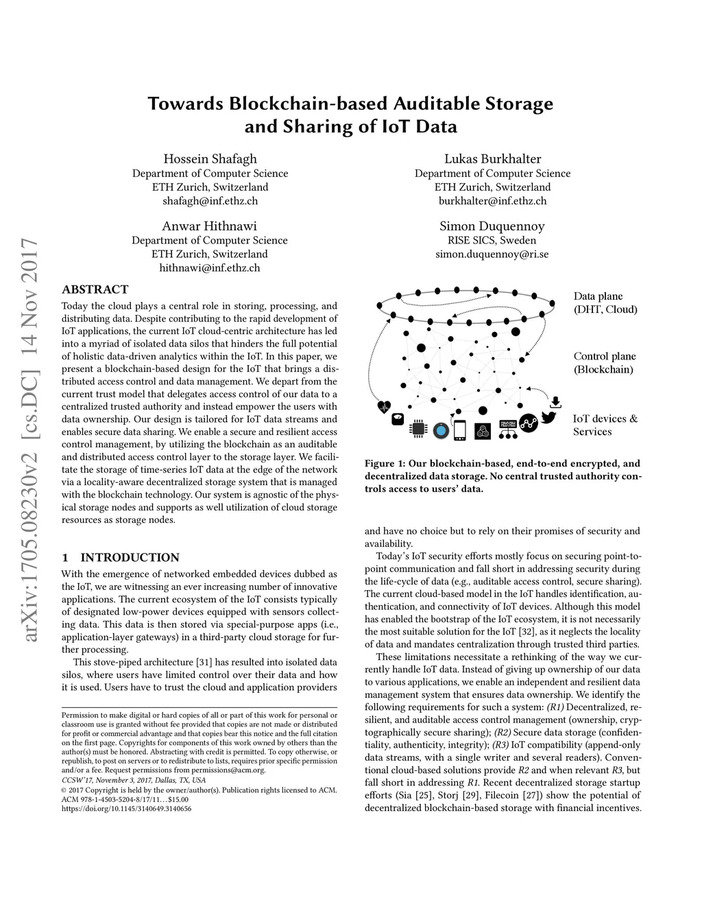 Towards Blockchain-based Auditable Storage and Sharing of IoT Data